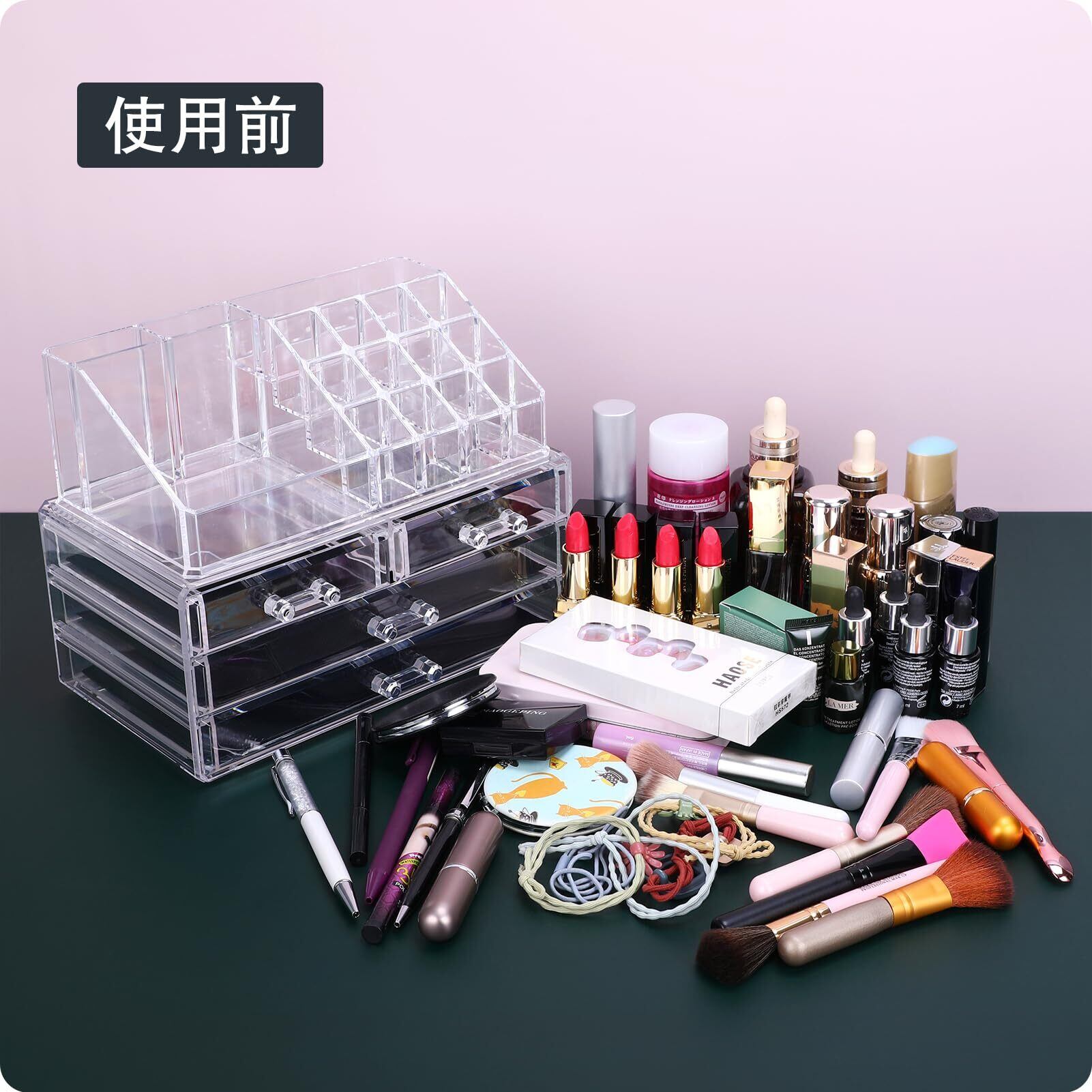 コスメ収納 メイクボックス リップ ネイル メイクブラシ 香水 化粧水 メイク道具 小物収納 アクリル 透明 大容量 おしゃれ 重なる 小物ケース (4 引き出し)
