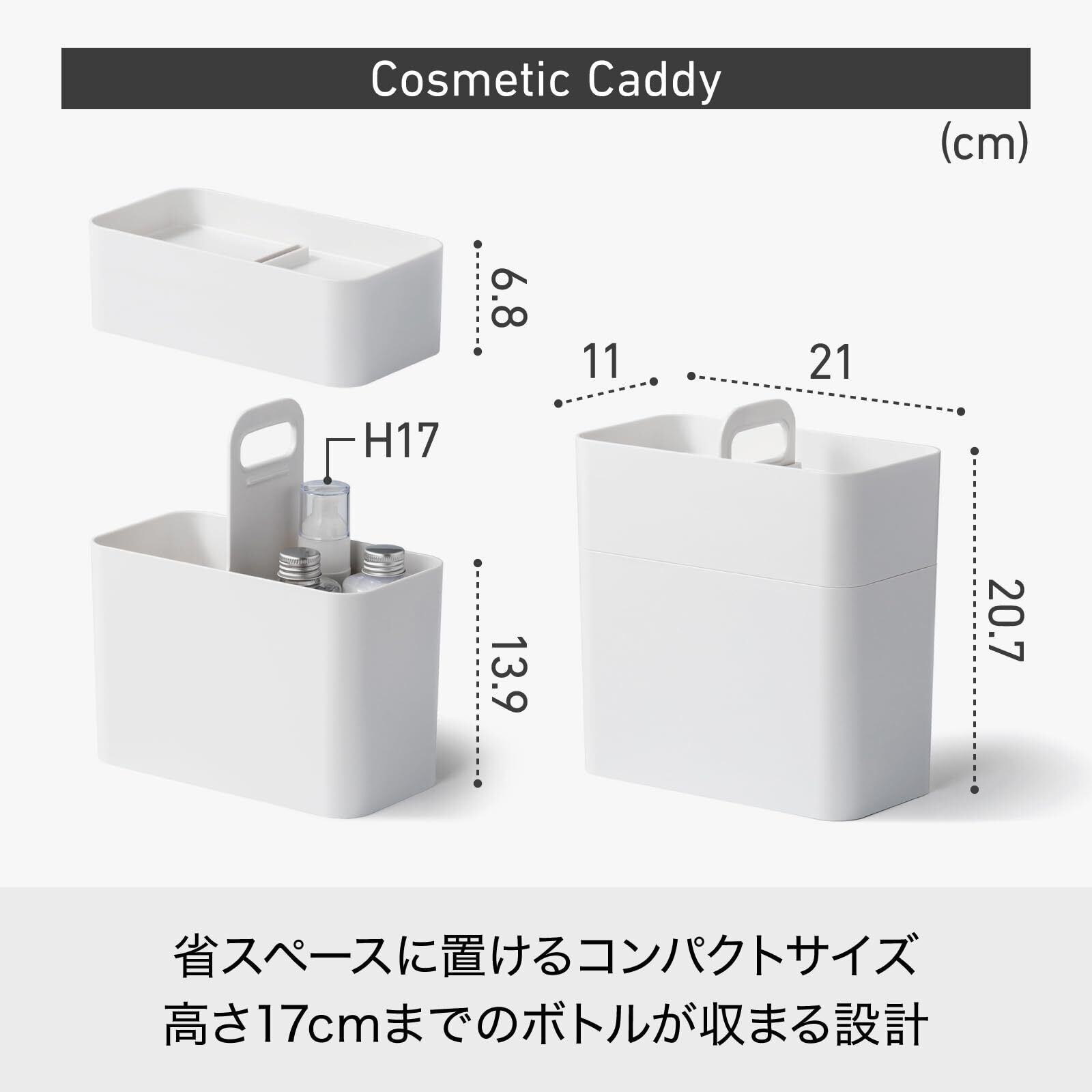 ライクイット (like-it) 収納ケース 洗面でも使いやすい メイクボックス 鏡付き 約幅11x奥21x高23cm ホワイト 日本製 コンパクト 持ち運びできる 幅11㎝ 鏡付き 時短メイク