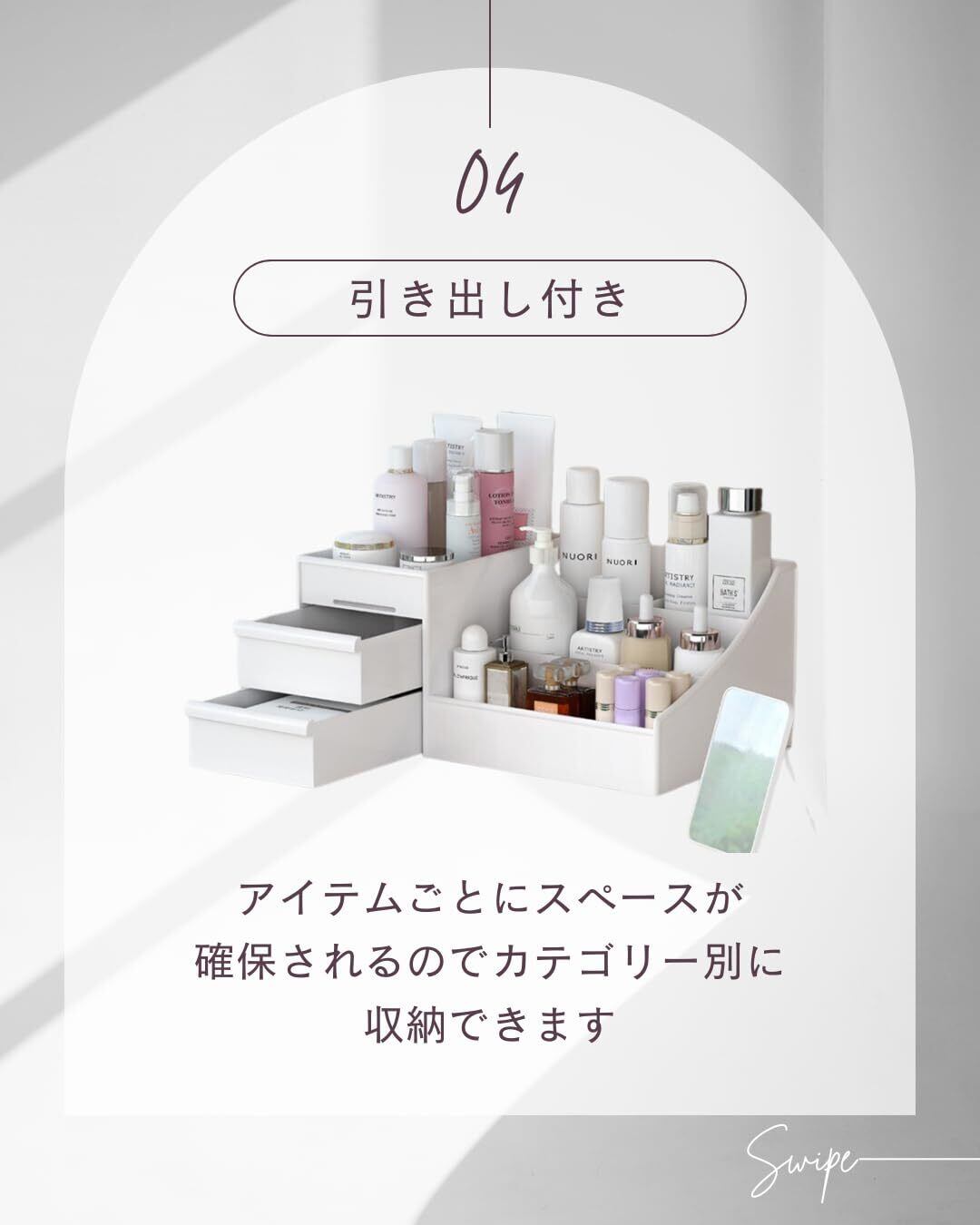 メイクボックス デスク 卓上 化粧品 収納ボックス 大容量 引き出し ケース コスメボックス メイクアップ 収納 (ホワイト)