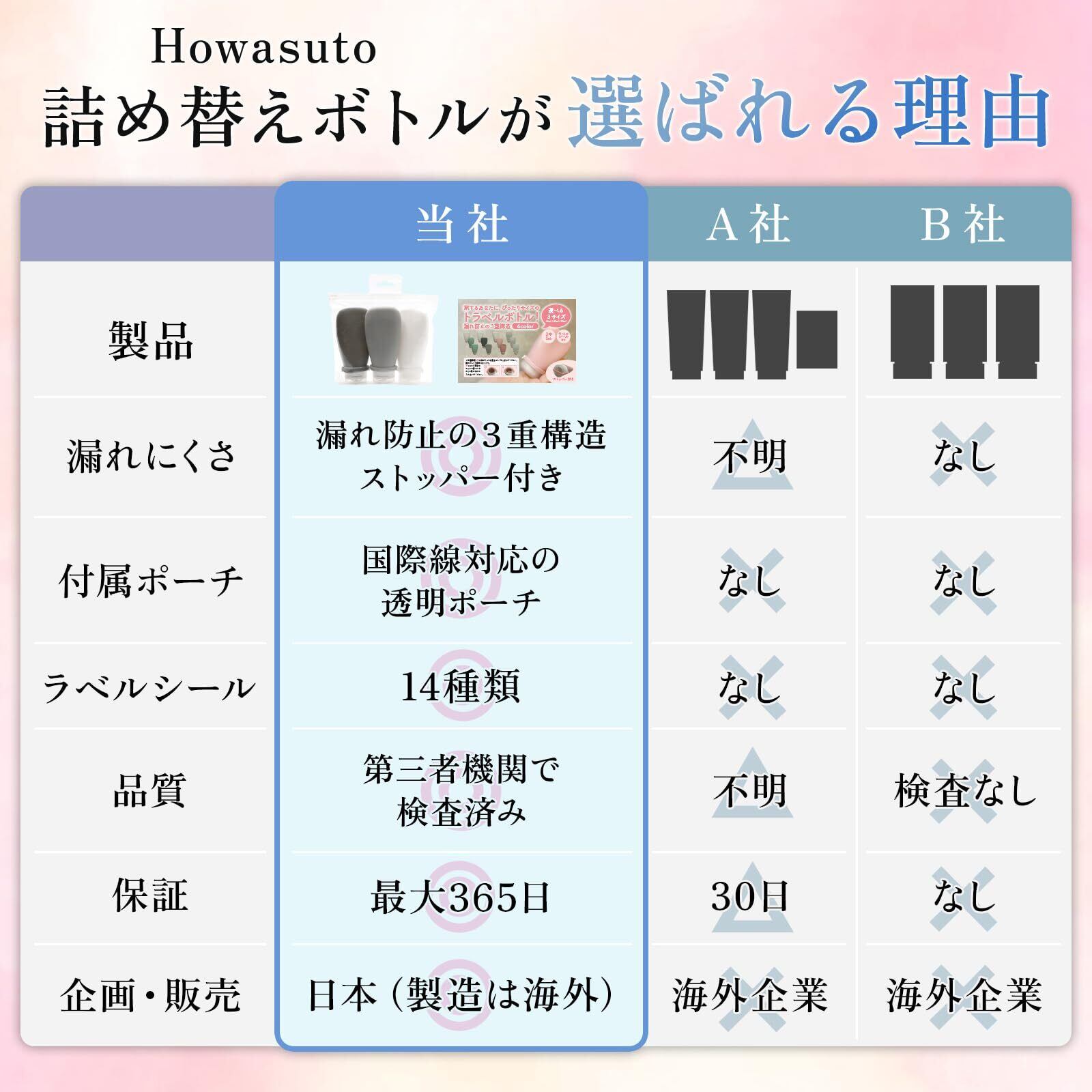 【使用可能な液体】シャンプー トリートメント ボディソープ 洗顔 化粧水 乳液 アルコール 香水 などの液体に使用頂けます。※シリコン素材はオイルに弱いため、ヘアオイル等のオイルに使用頂けません。
