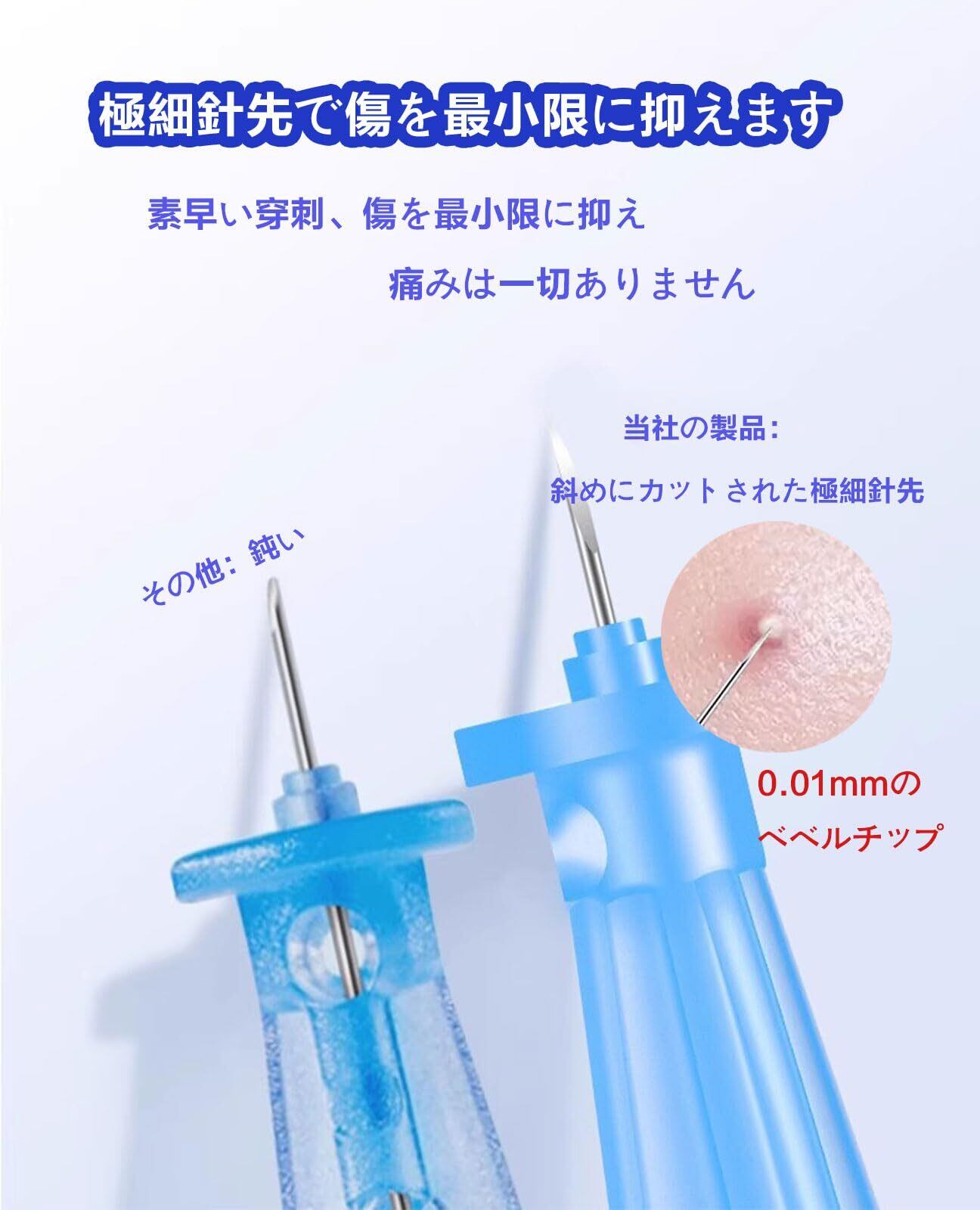 【プロ仕様の使い捨てニキビ針】 美容皮膚科でも使用されるダーマペン(ニキビ針)と同じタイプ。使い捨てのため、常に清潔で衛生的な状態でお使いいただけます。繰り返し使用による細菌感染のリスクを防止し、安全なニキビ・面皰ケアを実現します。