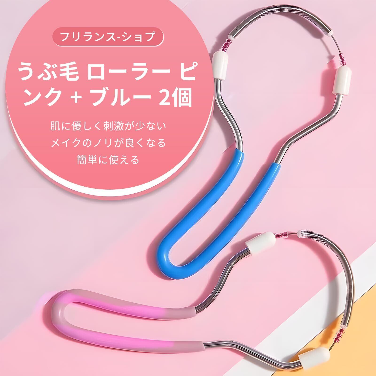 うぶ毛 ローラー ピンク+ブルー 2個セット フェイススクレーパー スプリングコイル式 ゆっくり転がす 短い綿毛 うぶげとり 細部 脱毛 産毛取り 顔 手に対応 眉間 うぶげ 水洗い可能