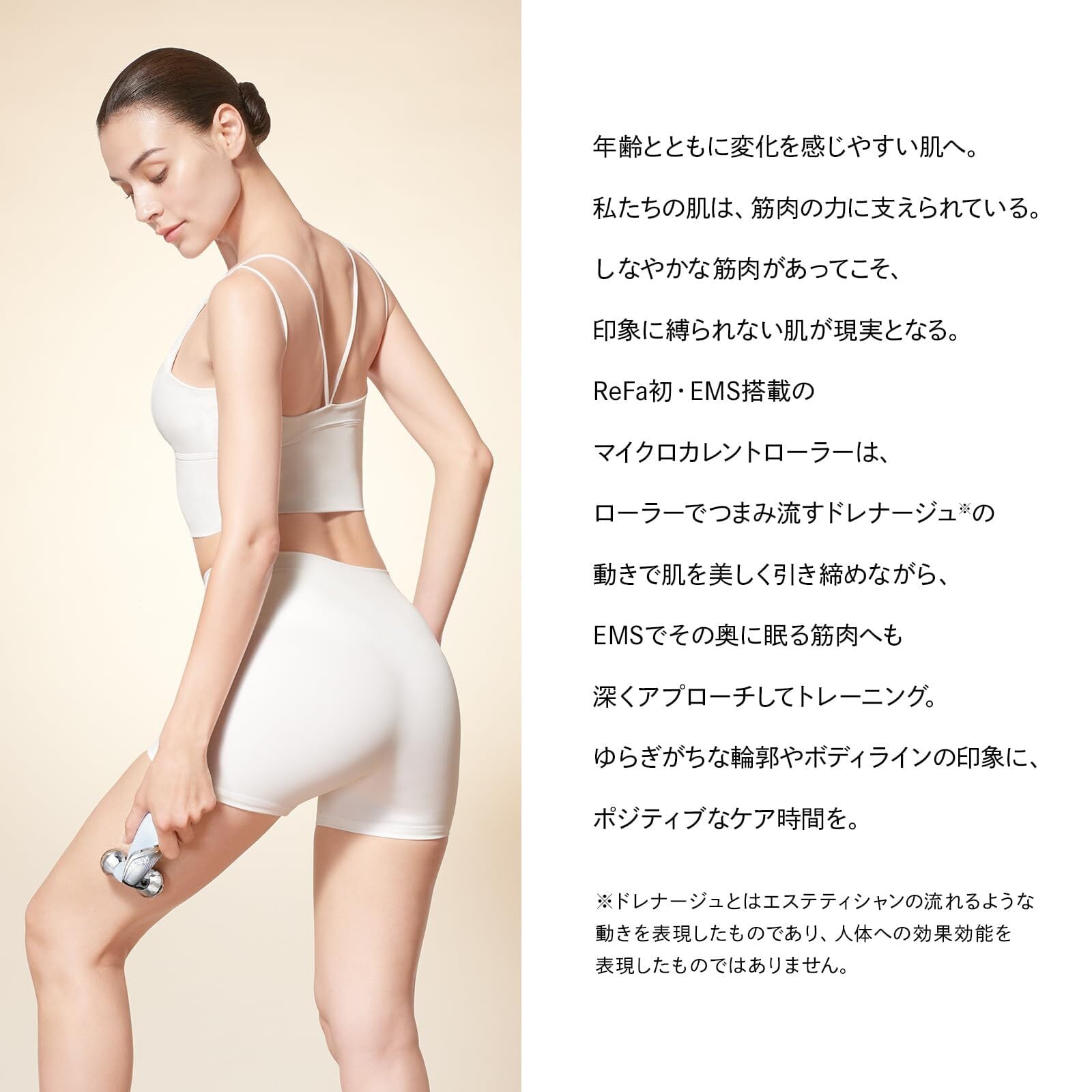 【筋トレ×美肌の掛け合わせを、全身へ。】 ReFa CARAT LIFTは、EMSで肌深層にアプローチするマッスルトレーニングと、ドレナージュ※で立体的につまみ流すケアを組み合わせたローラーです。コアの部分から肌印象の改革が必要な、大人世代だけでなく、スマートフォンやPCに向かう時間が長く、あごやおなかが圧迫されがちな現代人にも、ポジティブな変化へのアプローチを提供します。※ドレナージュとはエステティシャンの流れるような動きを表現したものであり、人体への効果効能を表現したものではありません。