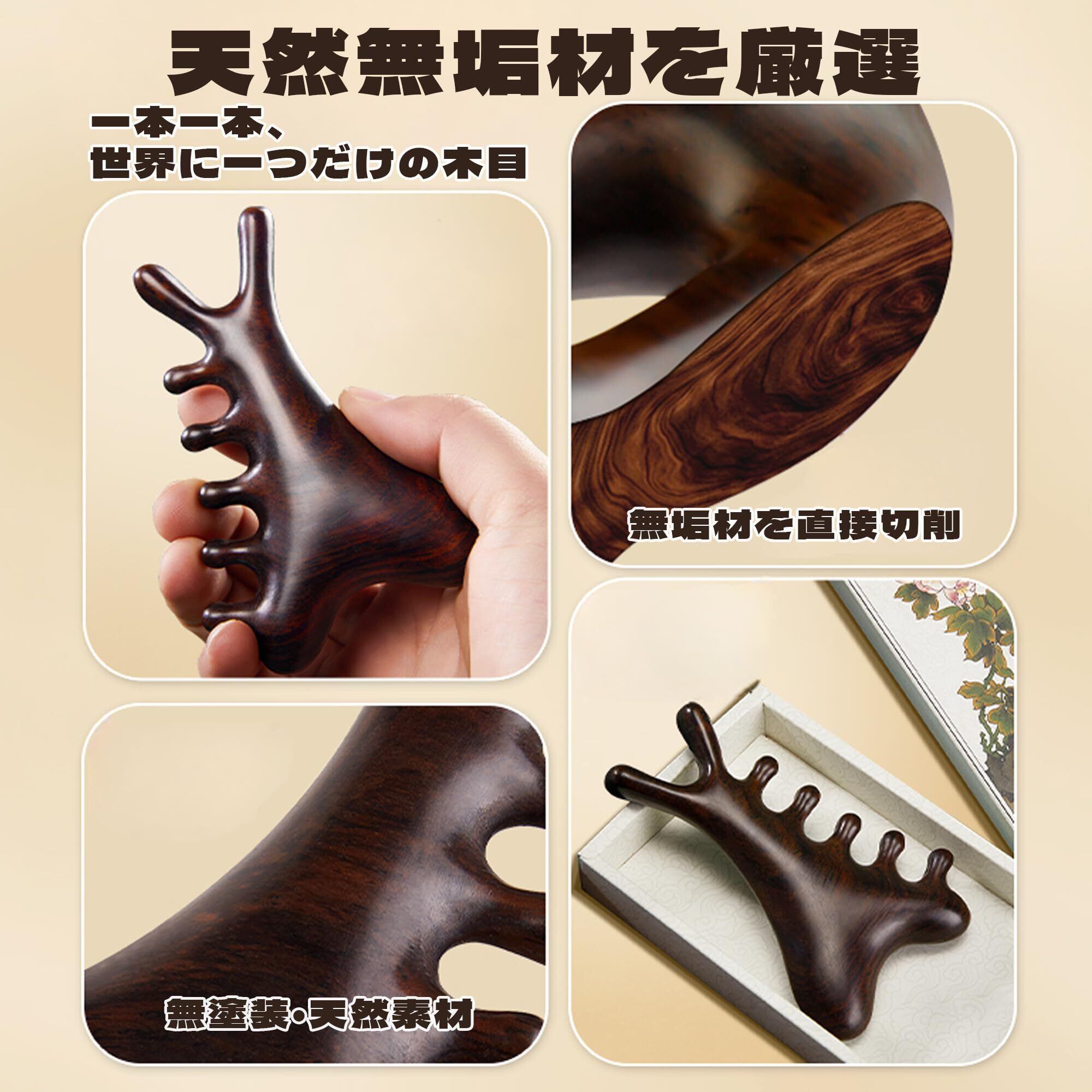 【新春セール】MAEXUS 2in1 かっさ プレート 顔 ツボ押し棒 頭皮 マッサージ カッサ 顔 天然タン材 くし型 多機能 顎ラインの改善 目の周り 鼻 ェイス マッサージ ツボ押し 全身スクレイピング用 自宅 エステ (2in1)