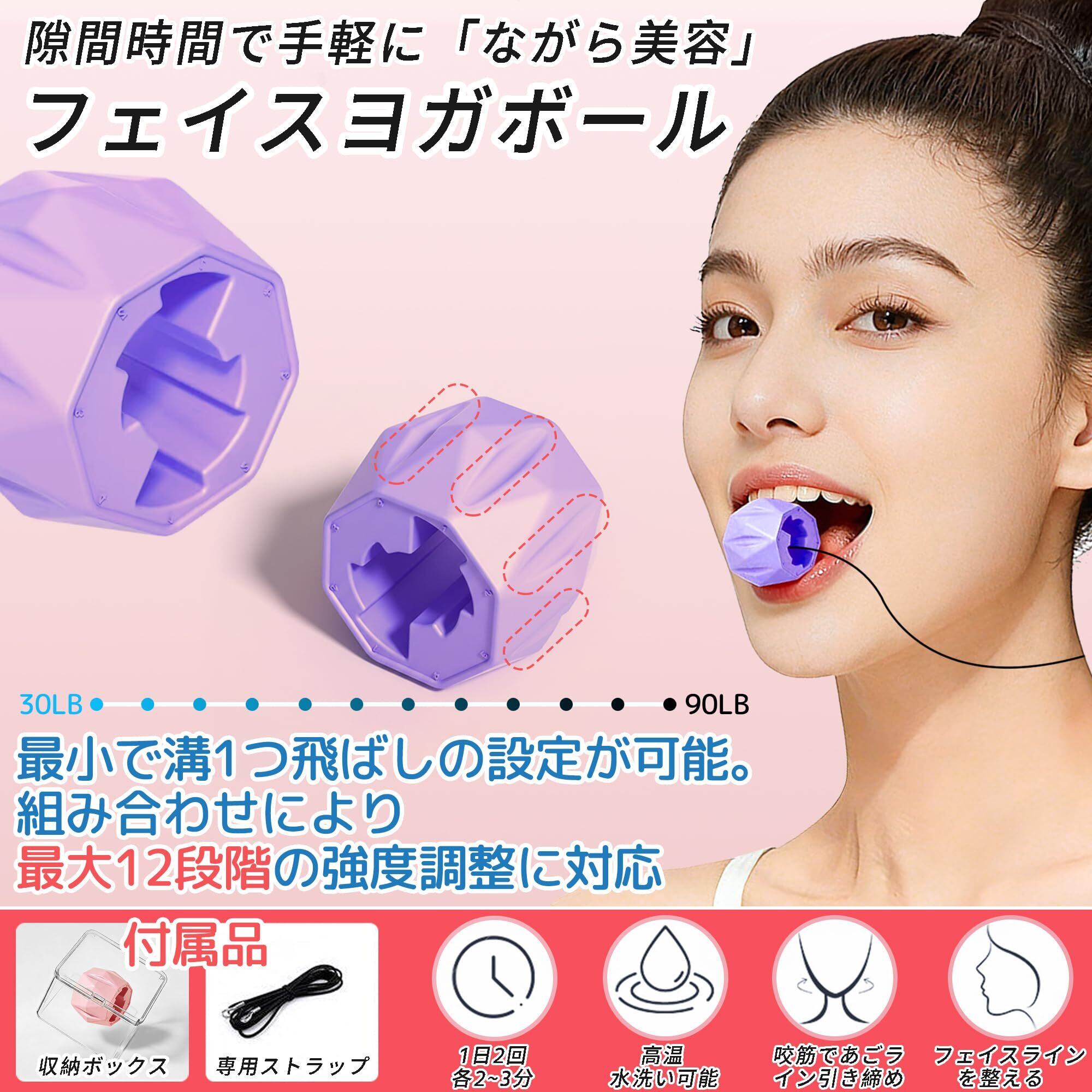 【新春セール】フェイスヨガボール 顔ボール【2026新モデル-多段階硬度】フェイスケア フェイスラインケア シリコン製 無臭 耐熱 丸洗い可 軽量 持ち運びに便利 男女兼用 収納ボックス ロープ付き (パープル 1個)