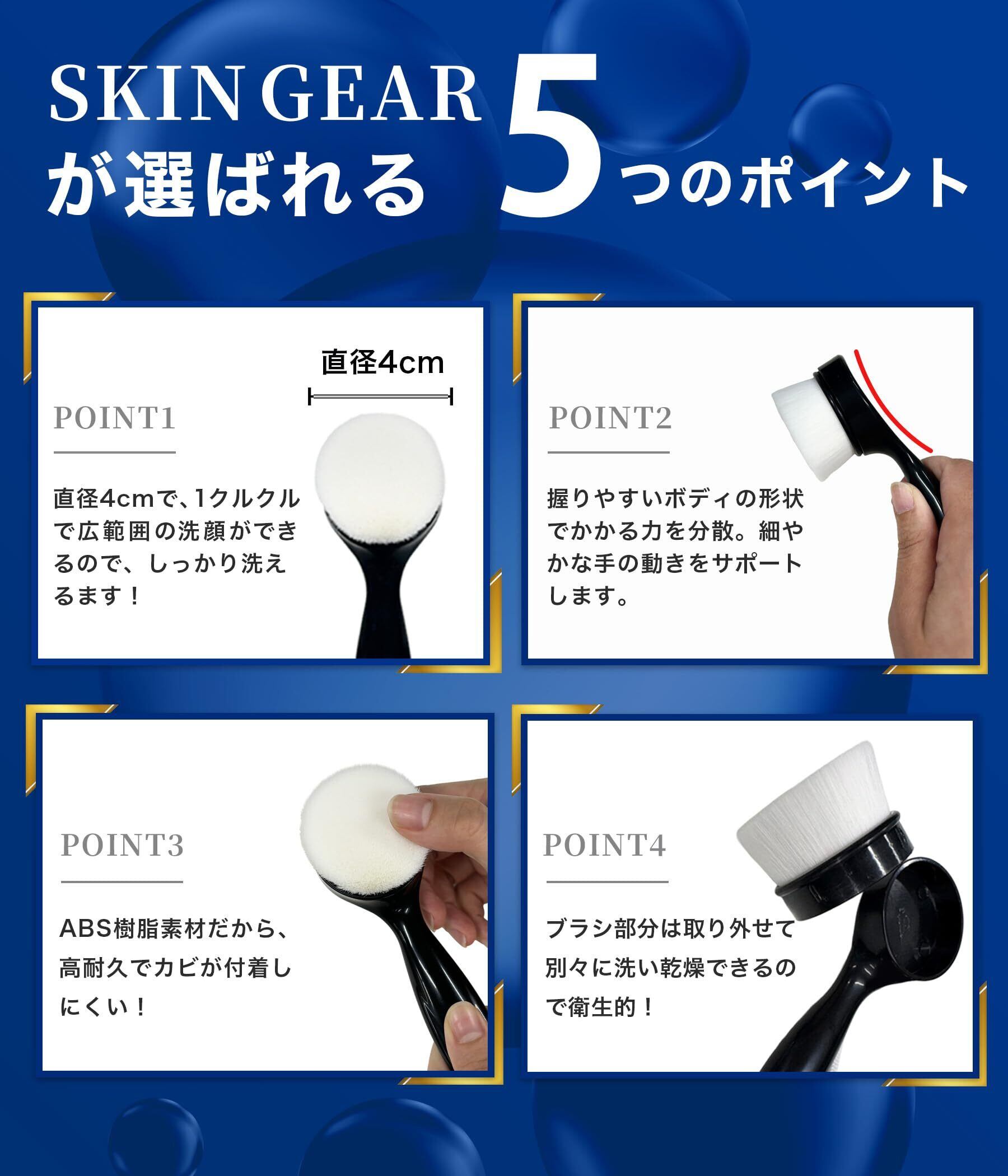 【新春セール】【美容外科医監修】SKIN GEAR 男性のための洗顔ブラシ 極細毛 クレンジング 男性肌 黒ずみ 加齢臭 角栓 毛穴ブラシ 洗浄 フェイスウォッシュ 濃密泡 スキンケア (本体)