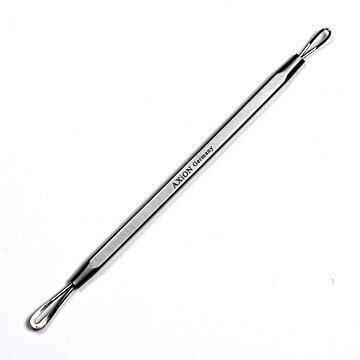 世界的に有名なドイツの刃物メーカーの集合地ゾーリンゲンで製造されたステンレス製の角栓プッシャーです。鼻周りや頬の角栓を大きさによって両端の輪のどちらかの中央に合わせゆっくりと押していきます。角栓や黒ニキビが面白いように取り除くことが出来ます。本体はスモーク仕上げで滑りにくくべたつかず、手にしっくりとなじみます。