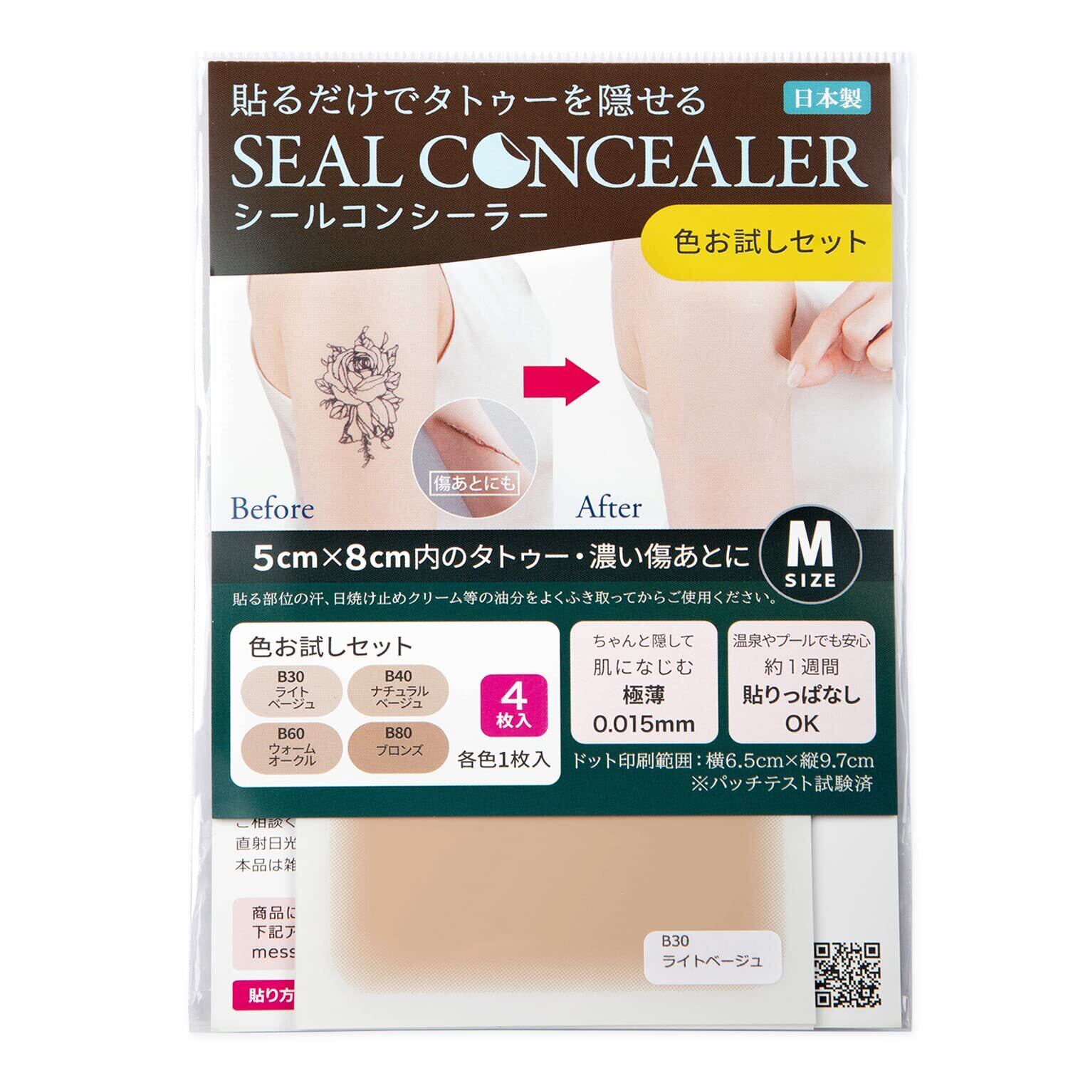 [クラッセ]タトゥー隠し専用 シールコンシーラー しっかり隠せる タトゥー 傷跡 アザ 貼るタイプ 日本製 貼りっぱなしOK 極薄0.015㎜ テカらない 汗水に強い(お試しセット 4枚入り)