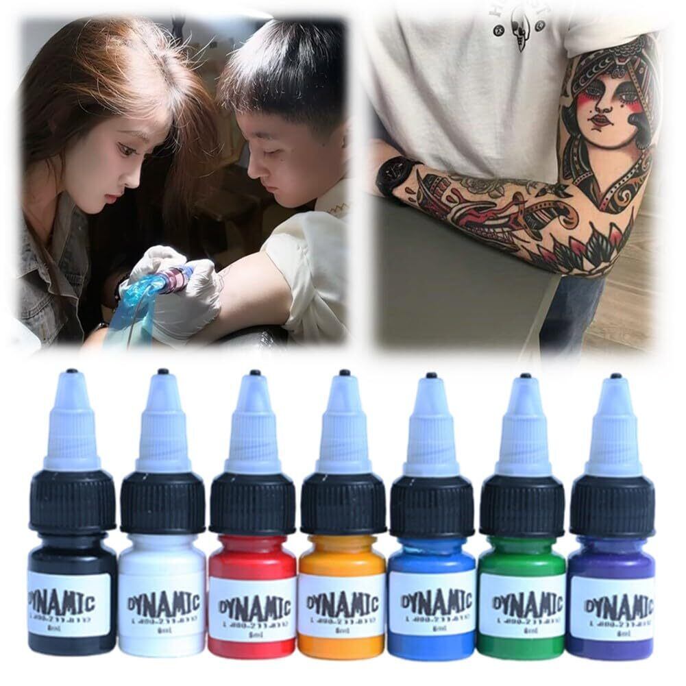 【在庫処分】タトゥーインク ソリッドインク 7/14色タトゥーインクセット 8ミリリットル天然植物タトゥー顔料 タトゥー機器用のインクセット ダイナミック タトゥーインク 永久メイクの入れ墨インク顔料ボデ 新しいタトゥーアイテムのための信頼性のあるインクセット プロフェッショナル美容ボディアートタトゥーインクキット (7色)