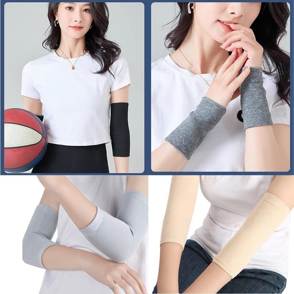 【通気性と柔らかな素材】綿とポリウレタン(スパンデックス)の混紡素材を採用。これらの弾性のあるアームスリーブは柔らかく、通気性に優れ、柔軟です。前腕を締め付けず、快適なフィット感を提供します。