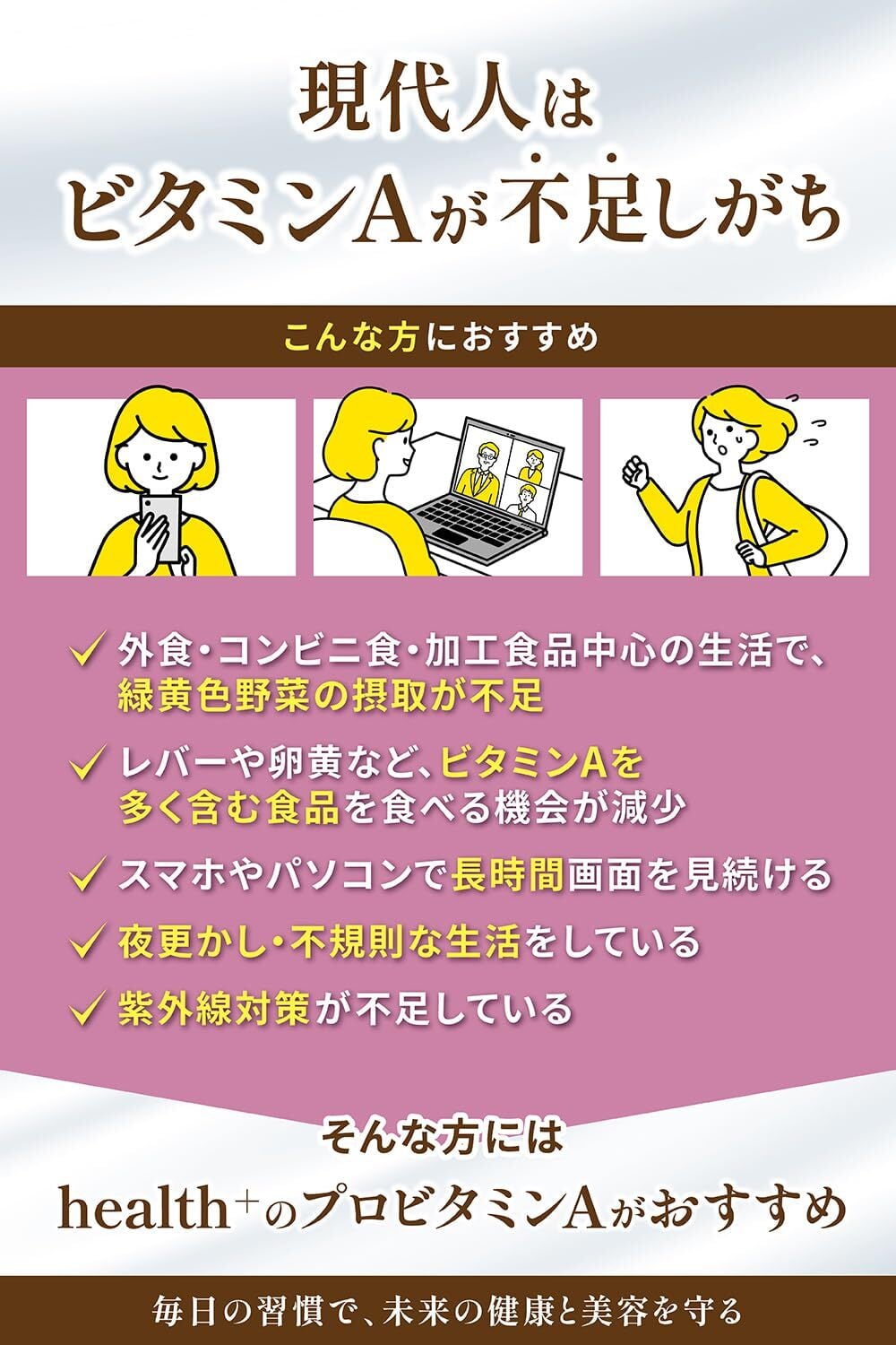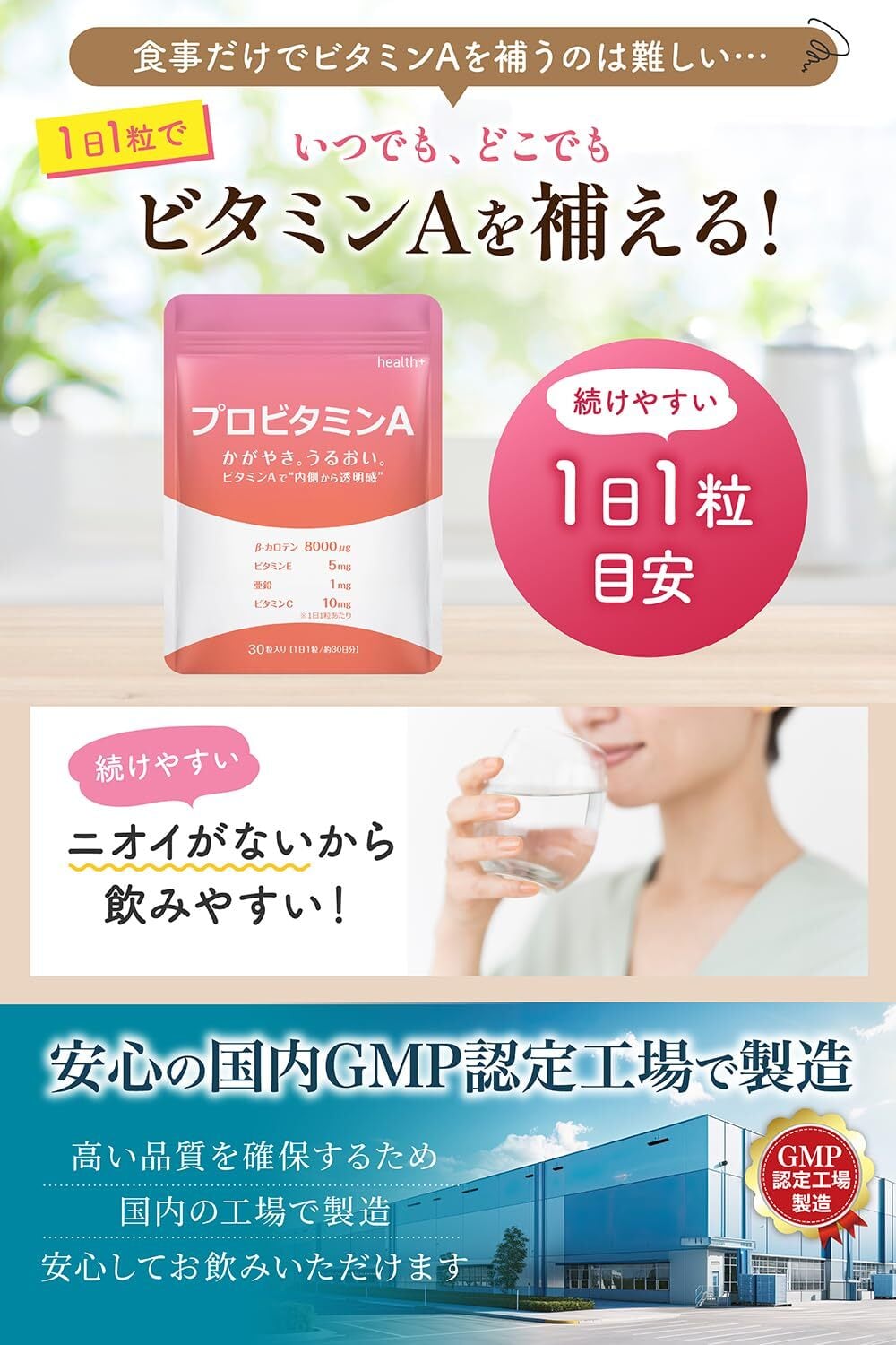 【新着商品】health+ ビタミンA ベータカロテン 8000μg ビタミンE 亜鉛 ビタミンC 30日分 30粒 国内GMP認定工場製造