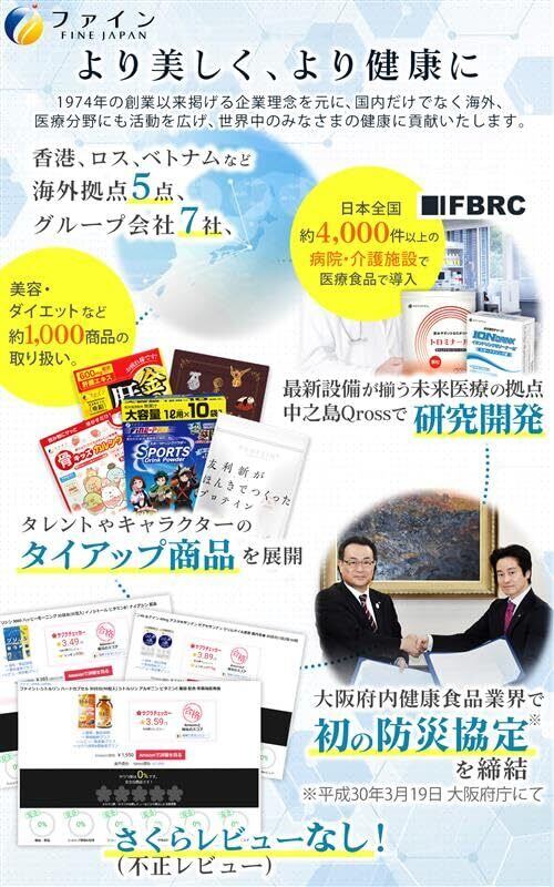 ファインは、日本国内で自社研究開発(研究所FBRCⓇ)、健康食品GMP対応自社生産工場(兵庫県3工場)など一貫した国内供給体制で、あらゆるジャンルのニーズを調査し、世界中の皆さまにご満足いただける商品を提案し続けています。