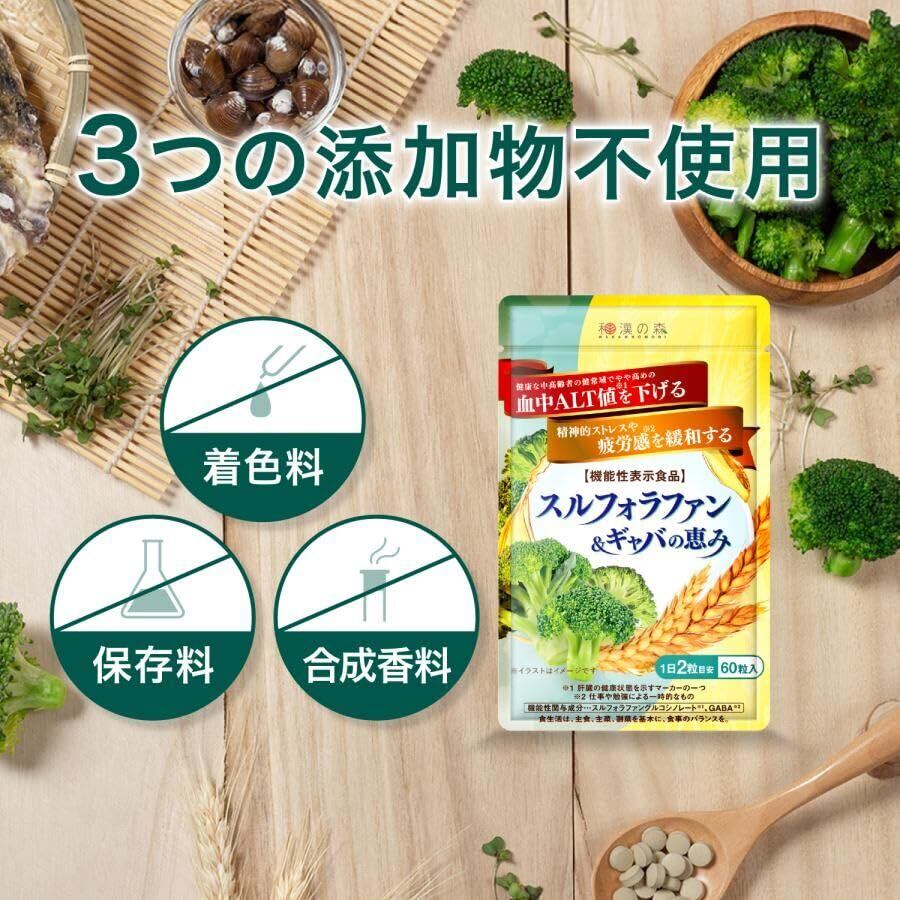 1袋60粒入り(240mg×60粒)錠剤タイプ 保存料 着色料 香料不使用【製造工場】国内GMP認定工場 栄養成分表示:2粒あたり(エネルギー1.85kcal・たんぱく質0.17g・脂質0.01g・炭水化物0.27g・食塩0.01g)GABA :100mg スルフォラファングルコシノレート:24mg ※特定保健用食品 トクホ とは違い機能性表示食品である。