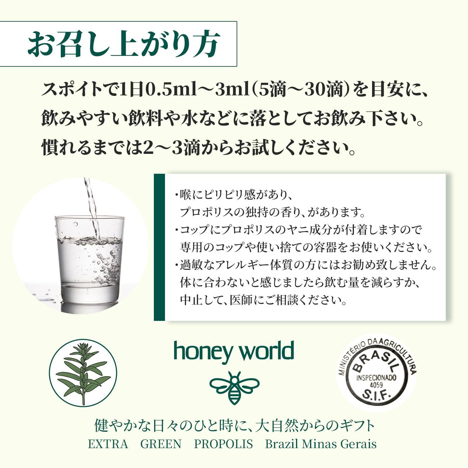プロポリス特有の樹脂成分が容器に付着することがあります。衛生的にお使いいただくため、専用容器または使い捨てコップのご使用をおすすめします。
