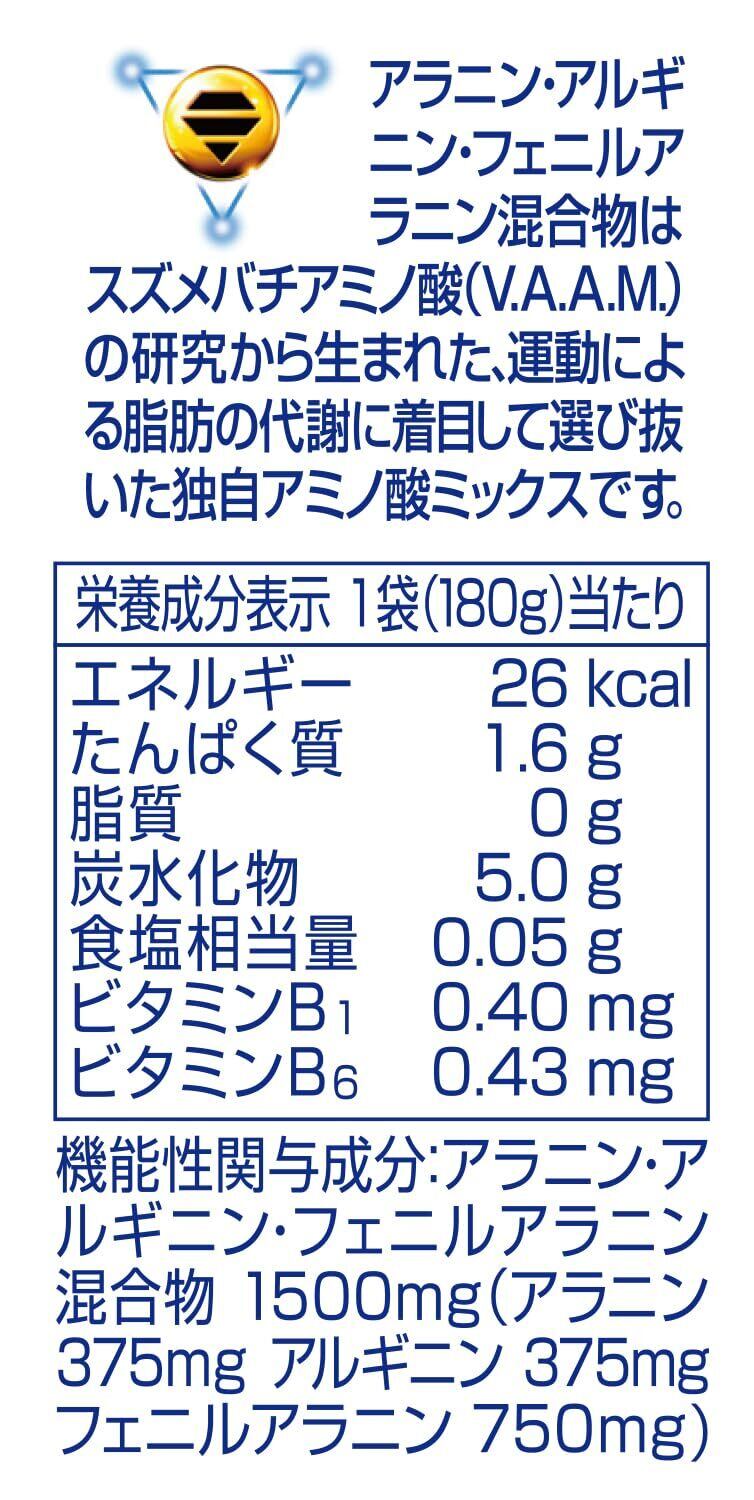 ●本品に含まれる3種類のアミノ酸から構成されるアラニン・アルギニン・フェニルアラニン混合物は、身体活動との併用により脂肪の分解と消費する力を高める働きがあります。本品は、身体活動を増やすことによる脂肪の代謝をさらに上げ、体脂肪をより減らす機能があるので、BMIが高めの方にてきしています。