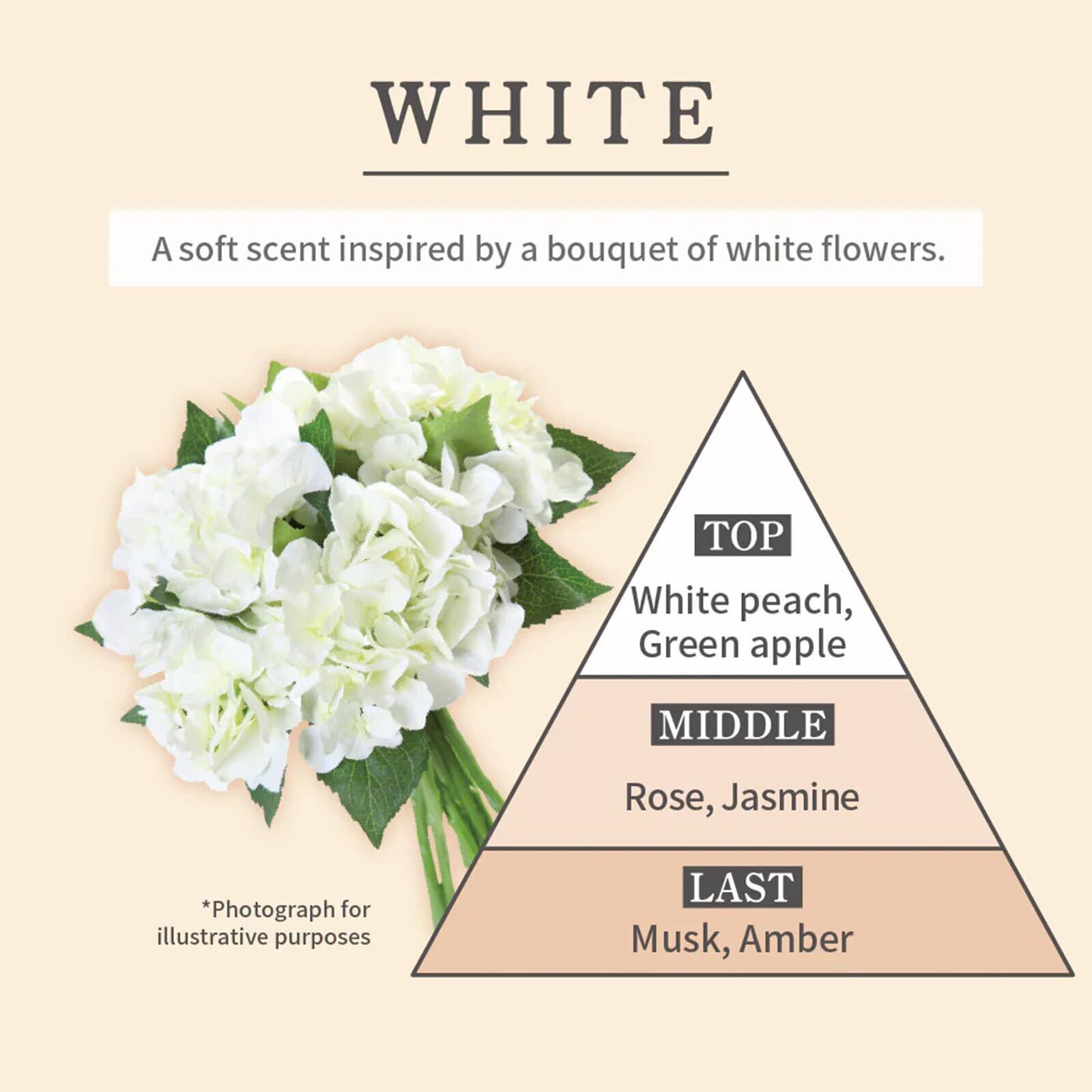 ロールオンタイプで携帯に便利なオードトワレです。少量でもしっかり香ります。ホワイトピーチ、グリーンアップル/ローズ、ジャスミン/ムスク、アンバー。白い花束をイメージした柔らかい香り。