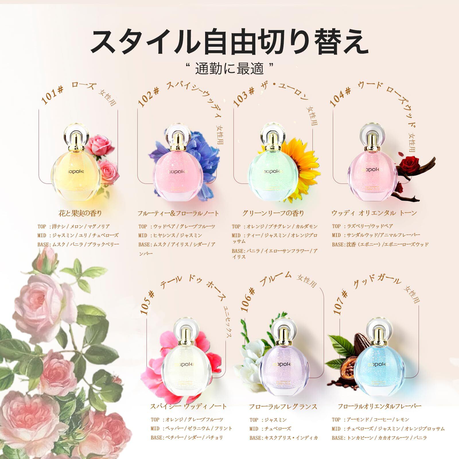 【長く続く清楚な印象】 肌にのせるとやわらかく香り立ち、長時間続くロングラスティングタイプ。香りの変化が自然で、つけた瞬間から時間が経つほど穏やかさが増します。オードパルファム 香水として、清潔感と上品さを両立。