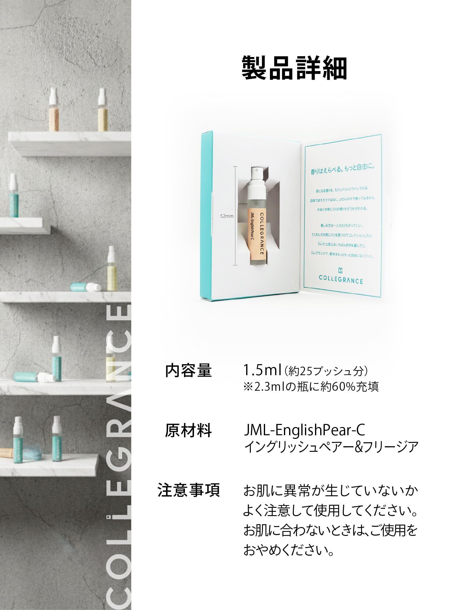 お試し香水 1.5ml ( 原材料:JML イングリッシュペアー&フリージア) オーデコロン EDC 小分け 独自詰め替え品 量り売り COLLEGRANCE021