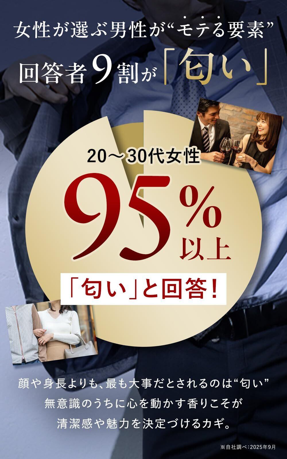 【センスフィール配合の独自設計】「フォルスコリン」と「テアフラビン」を掛け合わせた独自成分センスフィールを配合。力強くも上品な香り立ちが印象を刻み、存在感のある雰囲気を演出します。