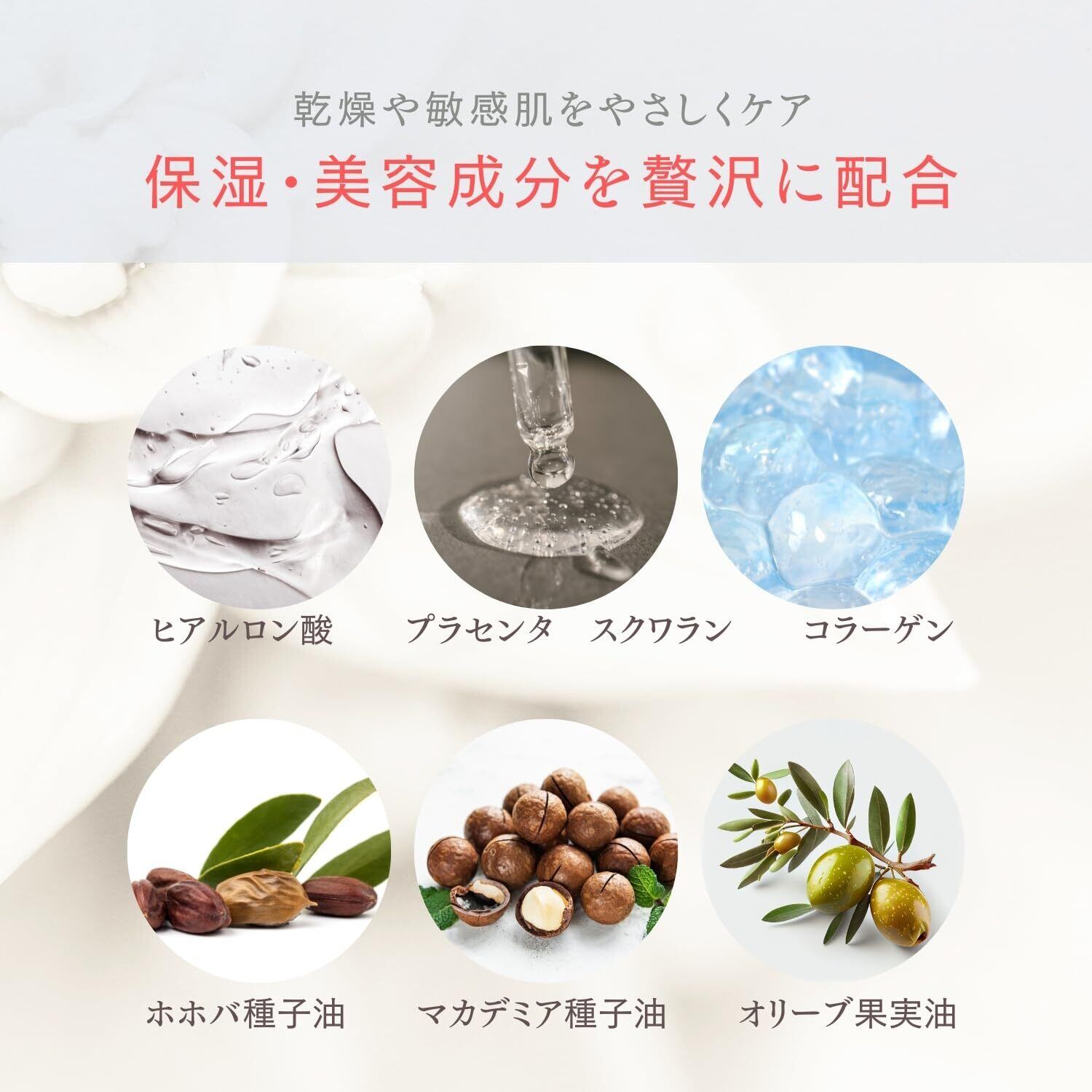 【保湿×美容】高い保湿力をもつヒアルロン酸・コラーゲン・プラセンタ・スクワラン・ワセリン・グリセリン・ホホバオイルなどを贅沢に配合!肌のかさつき・肌荒れ・乾燥・テカリなどのお肌トラブルにもしっかりと対処。更に、2種のビタミンCを含む複数の美容成分を配合しているので、しっかりと肌の深部まで浸透していき肌ケアまで!