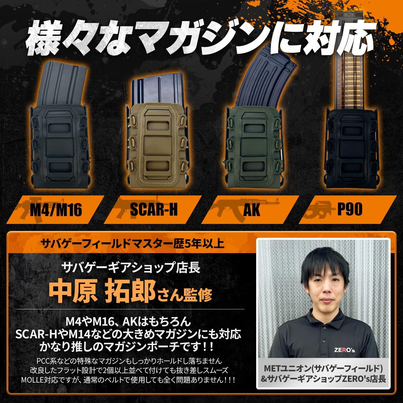『ほとんどの大きさのマガジンに対応』M4はもちろんAKやM14、SCARーHなど大型マガジンにも対応