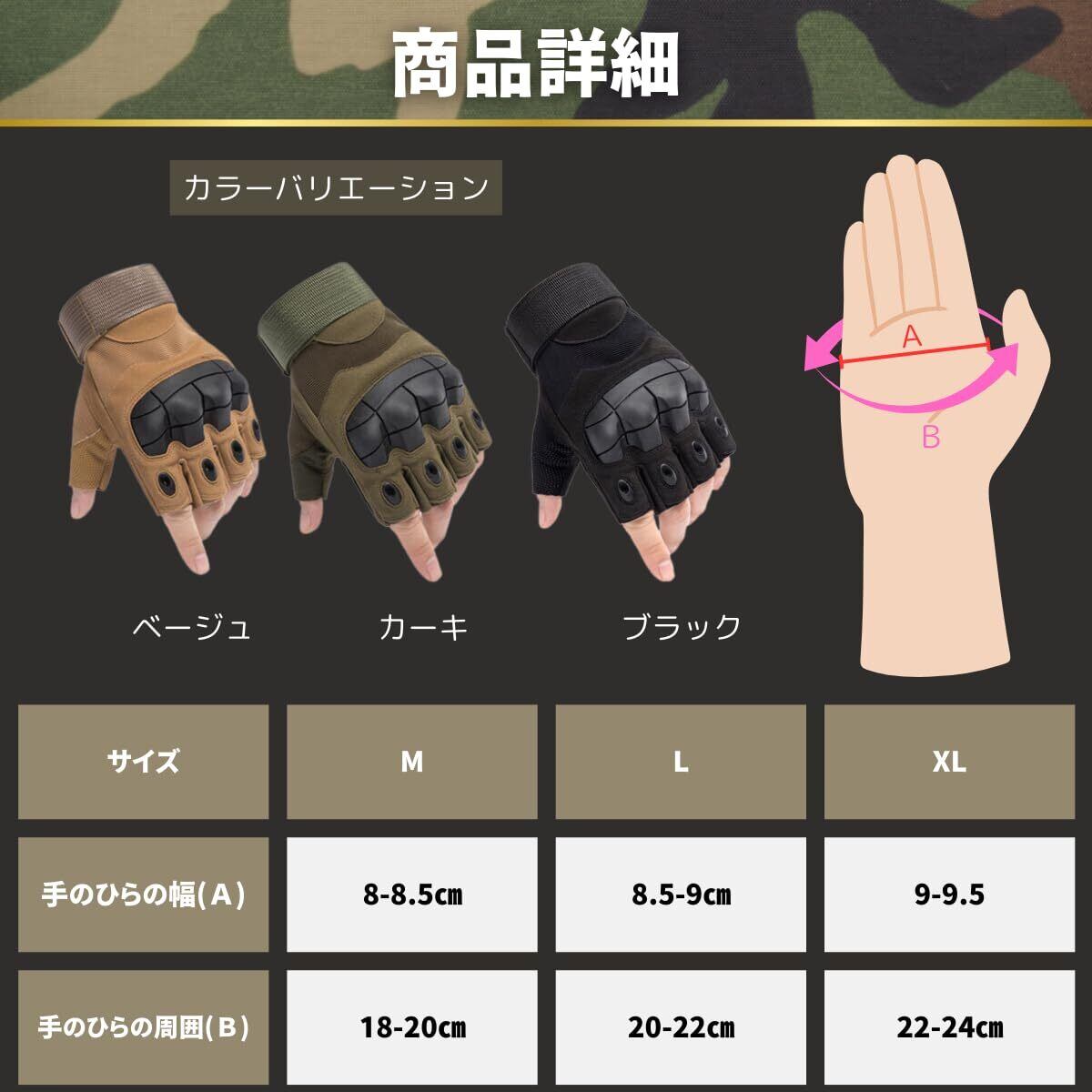 タクティカルグローブ 指ぬきグローブ サバゲー ハーフフィンガー 手袋 ミリタリー バイク キャンプ フィンガーレス 自転車 アウトドア 登山