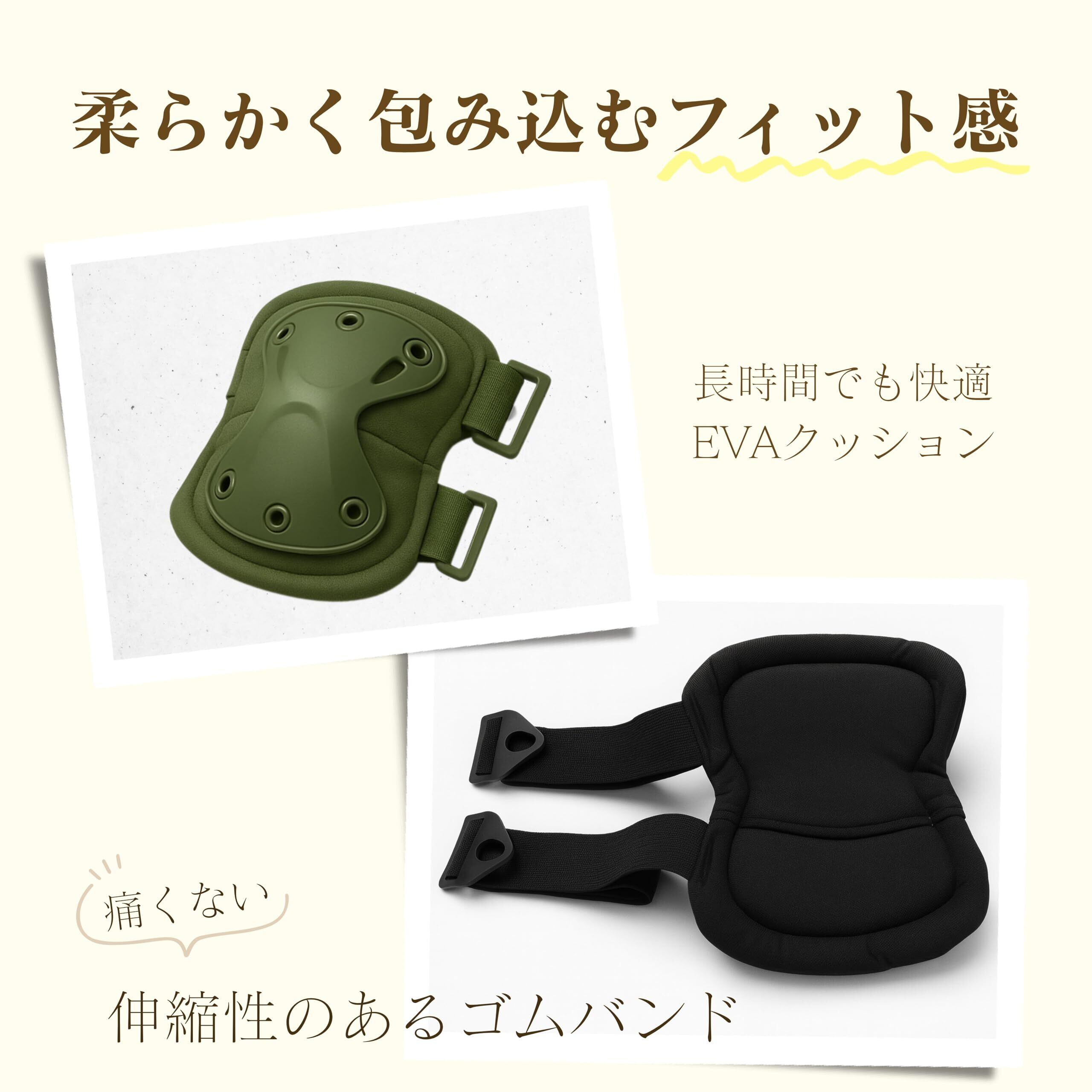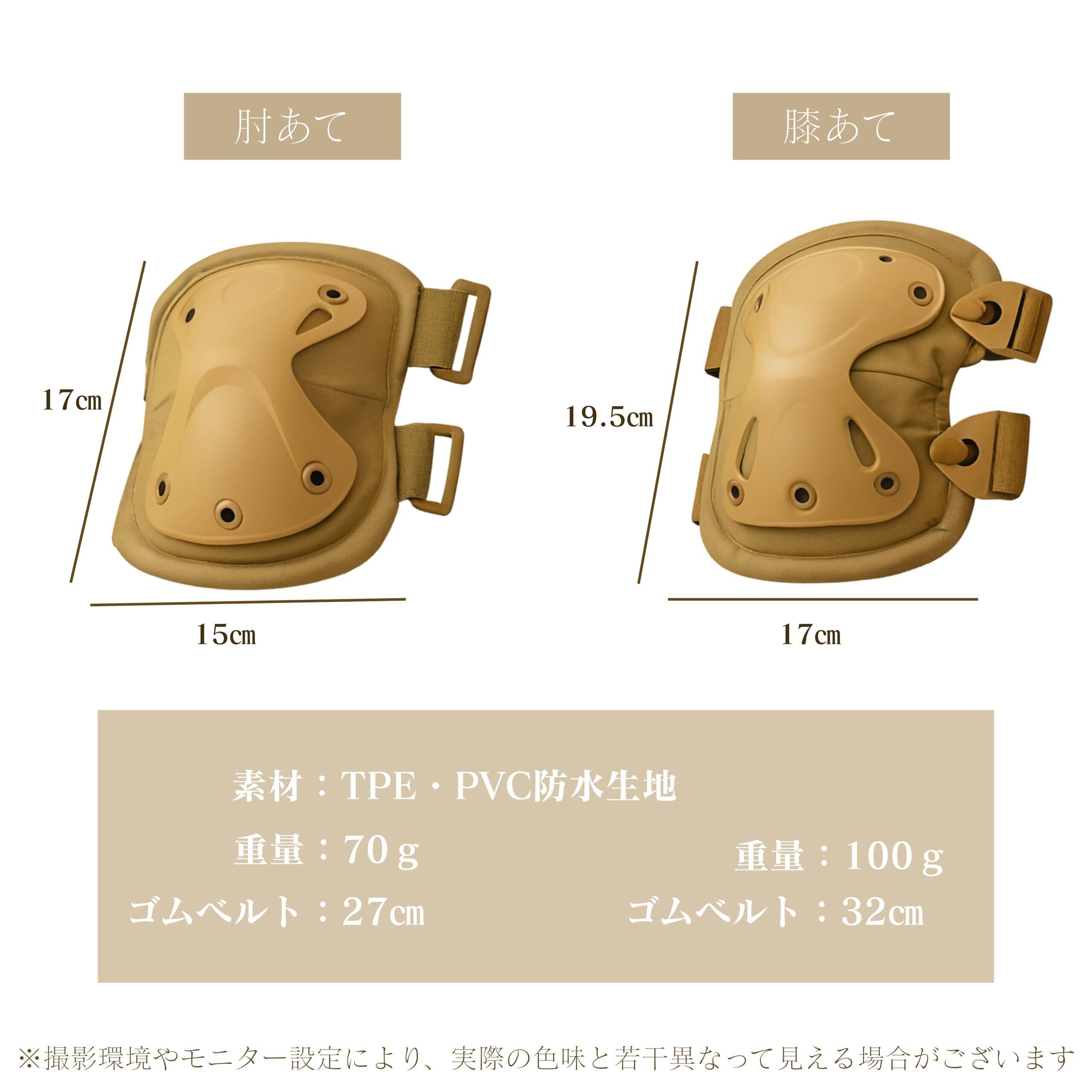 プロテクター ニーパッド サバゲー 装備 肘あて 膝あて 4点セット ミリタリー (ブラック)