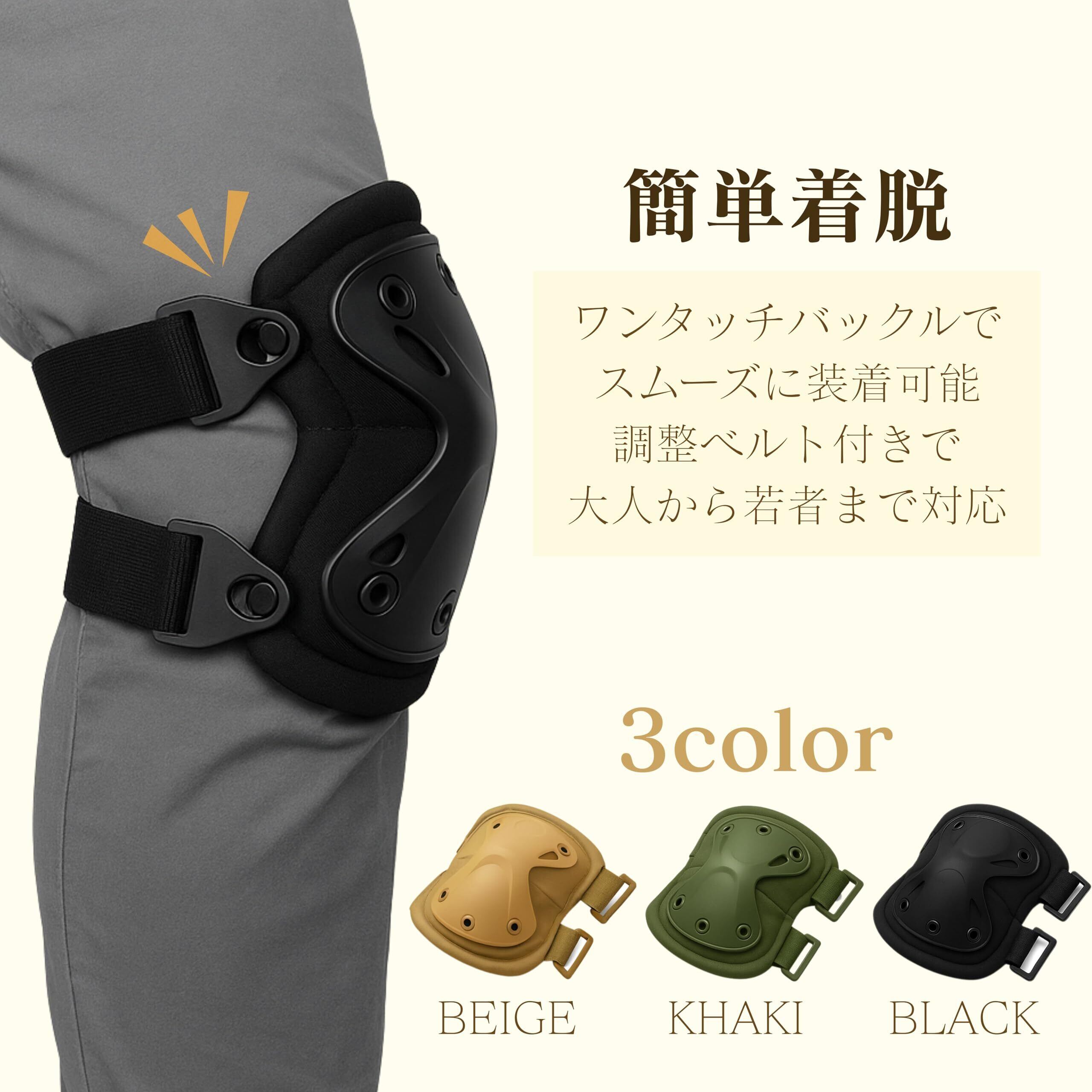【在庫セール】プロテクター ニーパッド サバゲー 装備 肘あて 膝あて 4点セット ミリタリー (ブラック)