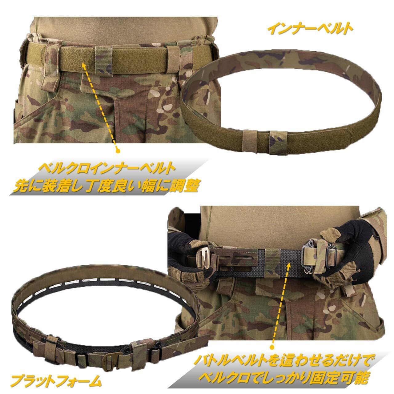 高強度の実物ラミネートナイロンと樹脂製のアウターベルトのプラットフォームで構成された超軽量のマイクロバトルベルトです。フックで留めるから付属しているコブラバックルに変更も可能。