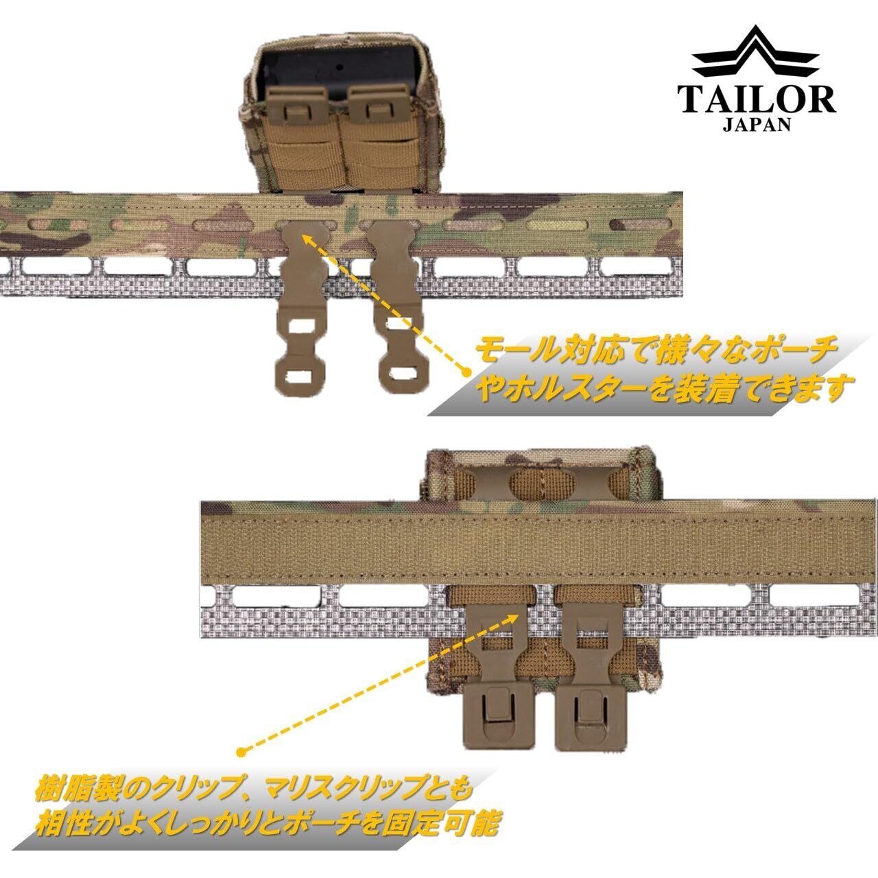 先進的なデザインのプラットフォームはさまざまなモールポーチを取り付けることが可能です。加えて樹脂製のマリスクリップとの相性も良くナイロンモールベルト以上にしっかりと固定できます。