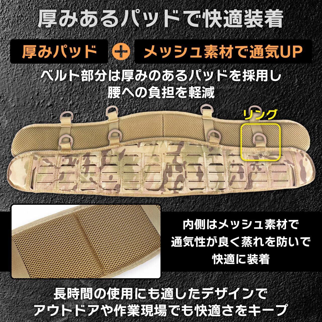 【 パッド付きデザイン】 腰回りに厚みのあるパッドを搭載し、長時間の使用でも快適に装着可能。サバゲーやアウトドアなどで激しい動きをしても腰への負担を軽減します。蒸れにくく快適な設計のため、夏場や長時間のゲームでも安心して使用可能。クッション性のあるパッド構造は装備の重量を分散させ、快適性と実用性を兼ね備えています。