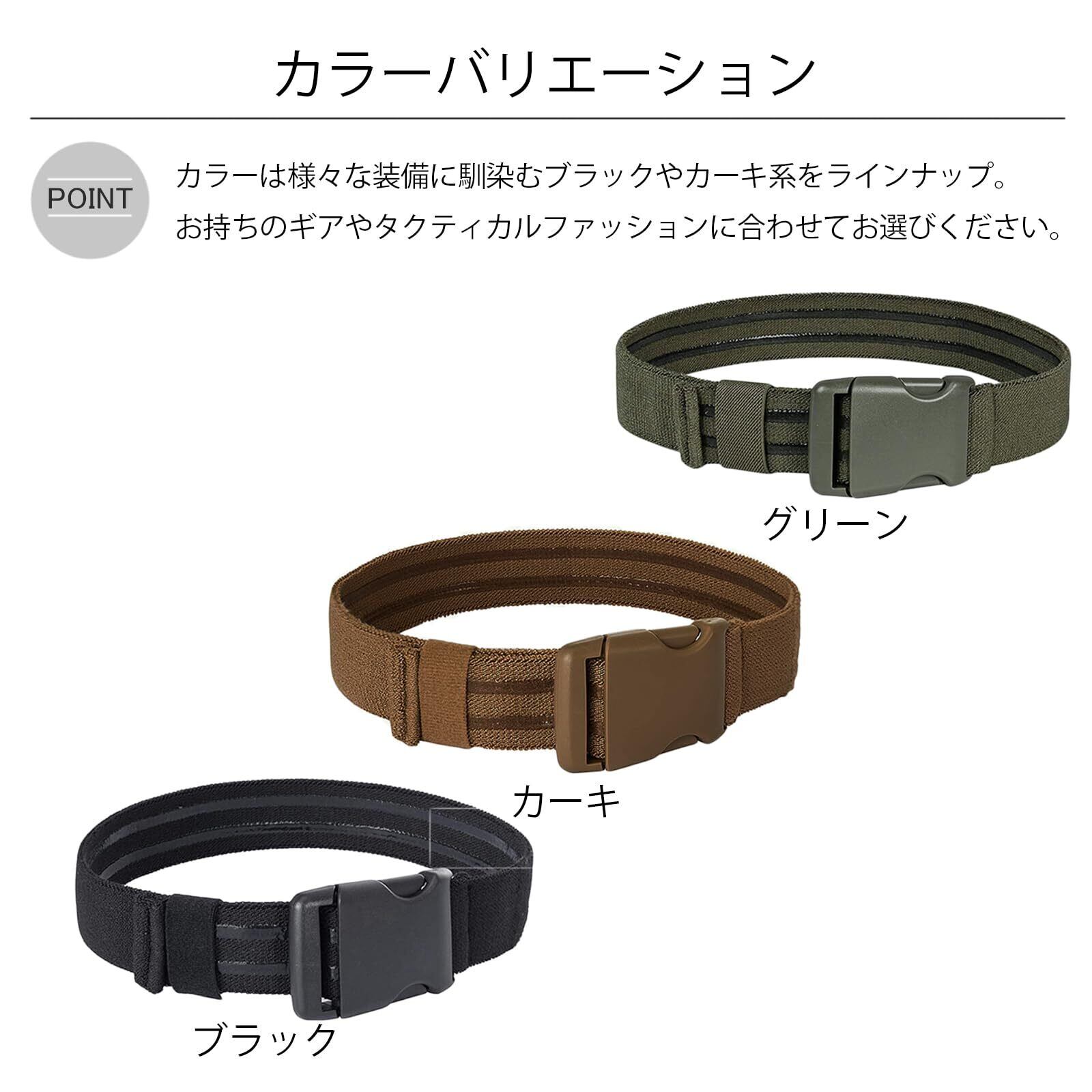 取り付けが簡単なクイックリリース仕様! クイックリリースバックルを採用しているため、装着・脱着が非常にスピーディーかつ簡単に行えます。バンドの長さは幅広いサイズに対応できるよう無段階で調整可能で、レッグプラットフォームやホルスター本体に追加固定バンドとして容易に取り付けられます。カラーは様々な装備に馴染むブラックやカーキ系をラインナップ。お持ちのギアやタクティカルファッションに合わせてお選びください。