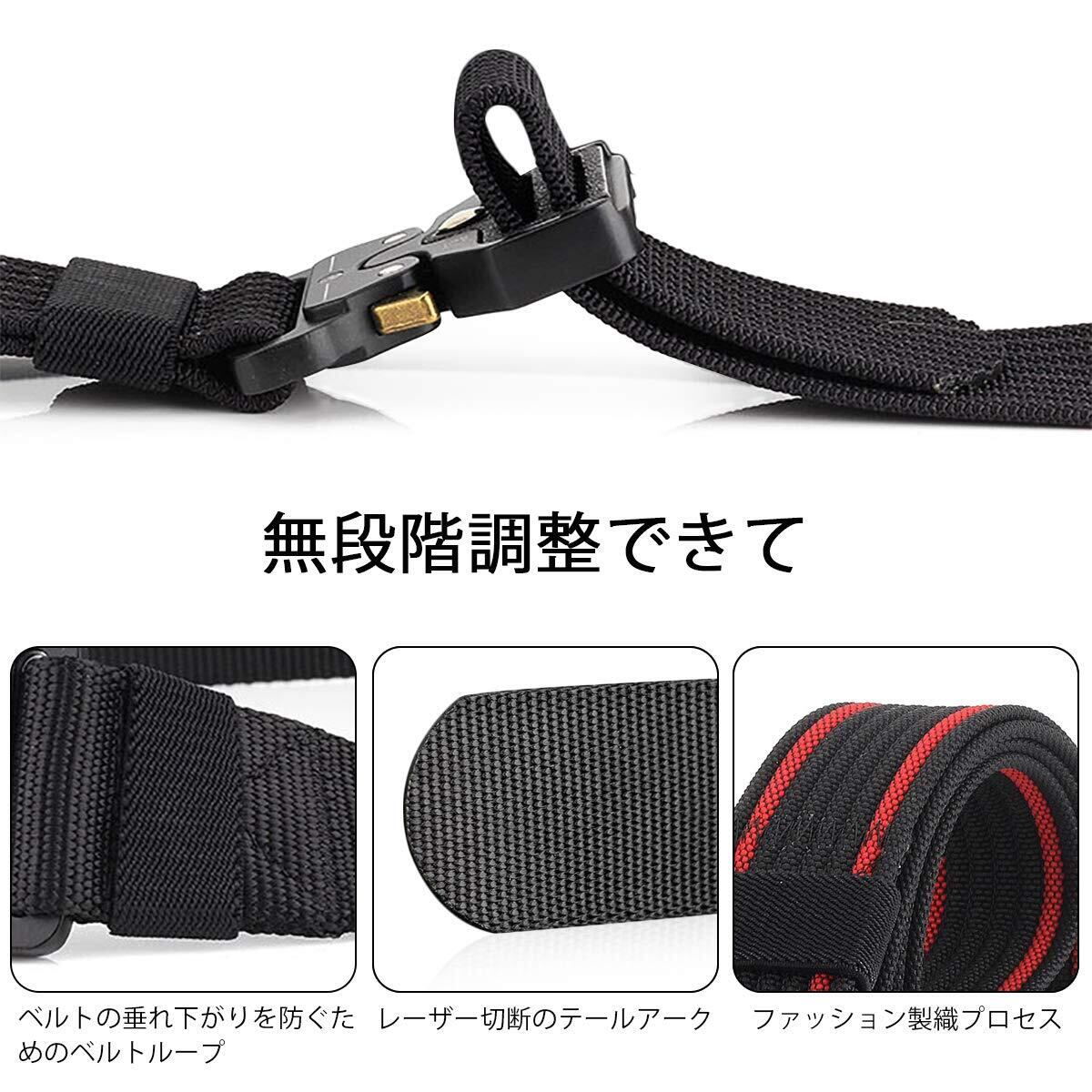 【高密度織りベルト】タクティカルベルトの素材は、高品質1000D ナイロン。ナイロン織りのユニークな通気孔により、革のムレ感を取り除き、快適で防汗性があり、腰が自由に呼吸できます。補強された糸で縫製されて、柔らかさと強度が上します。クールなスタイルのデザインはスタイリッシュな織り色のラインと一致します。