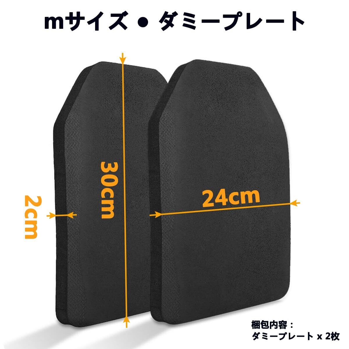 【mサイズ】ソフトプレートのサイズ(縦×横×厚さ)約30cm×24cm×2cm, SAPI規格プレートのMサイズとほぼ同等の大きさとなっています。重量:約150g。プレートキャリアのプレートスペースに差し込んで使うダミープレートセットです。サバイバルゲームなどに使用のベストにお勧めです。(2枚ダミープレート付き)