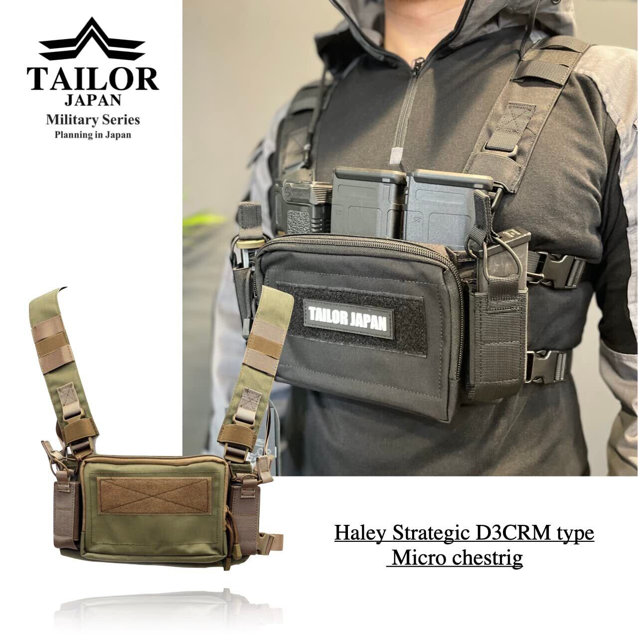 【こだわり①】:従来のものに要素を加えファッション性を含めたコンセプトで設計された、サバイバルゲーム用のチェストリグ。