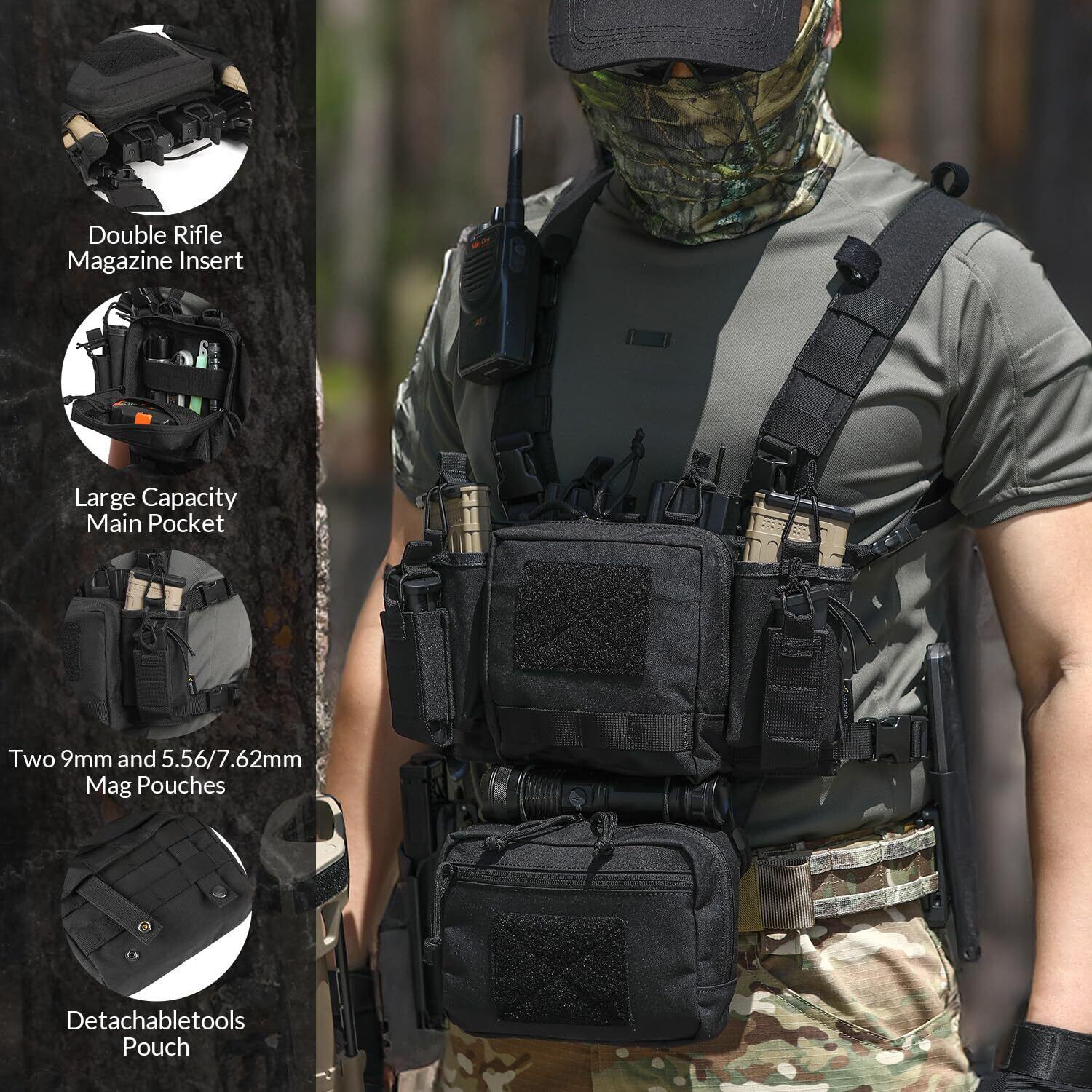 【2022最新】戦闘チェストリグタクティカルチェストバッグ 9mmマガジンポーチ付き 多機能収納5.56/7.62ポーチ 軽量 サバゲー ペイントボール