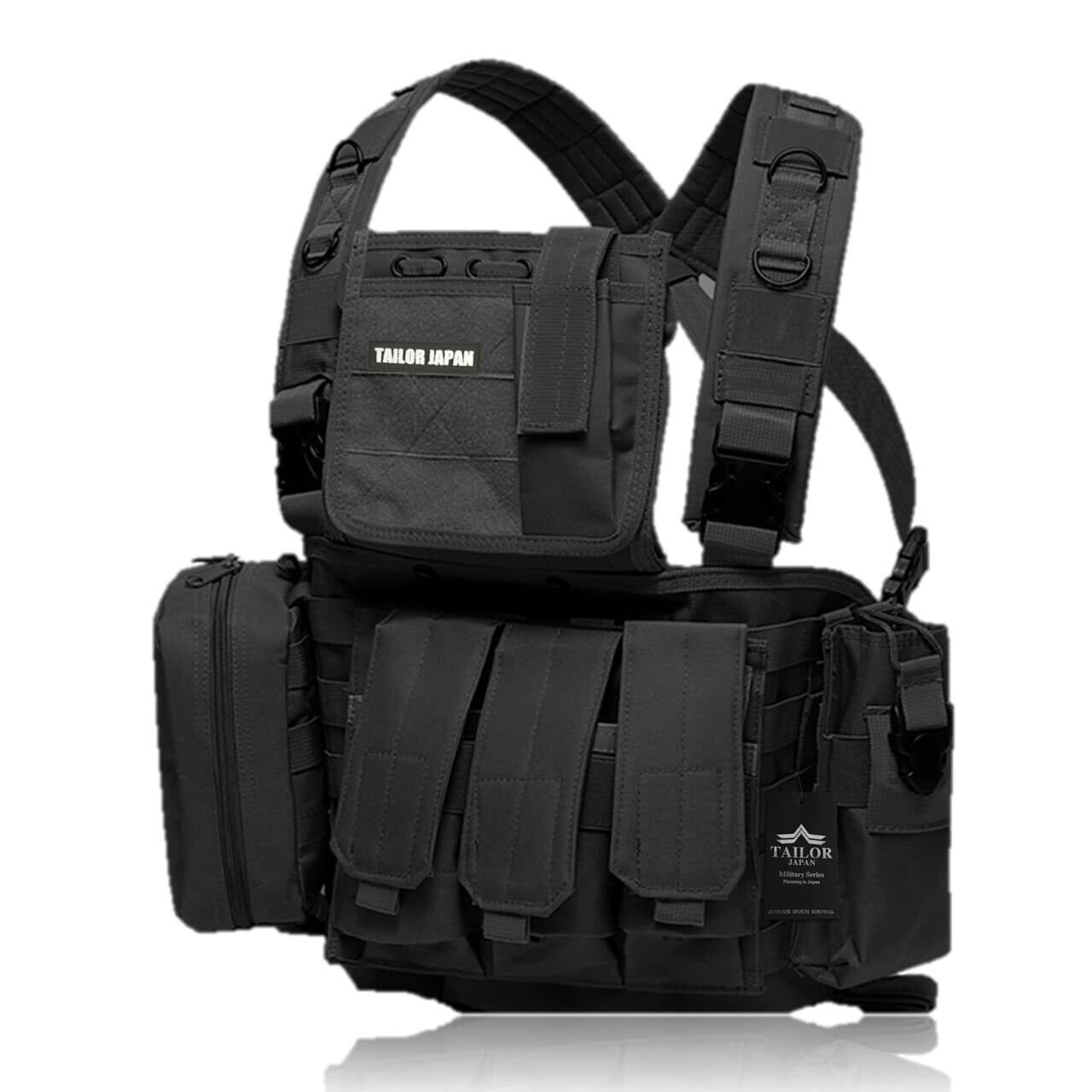 【特価商品】サバゲーベスト タクティカルベスト ベスト チェストリグ ライトウェイト モジュラーベスト MOLLE サバゲー装備 2way仕様 強化ナイロン 黒 Black (ブラック)