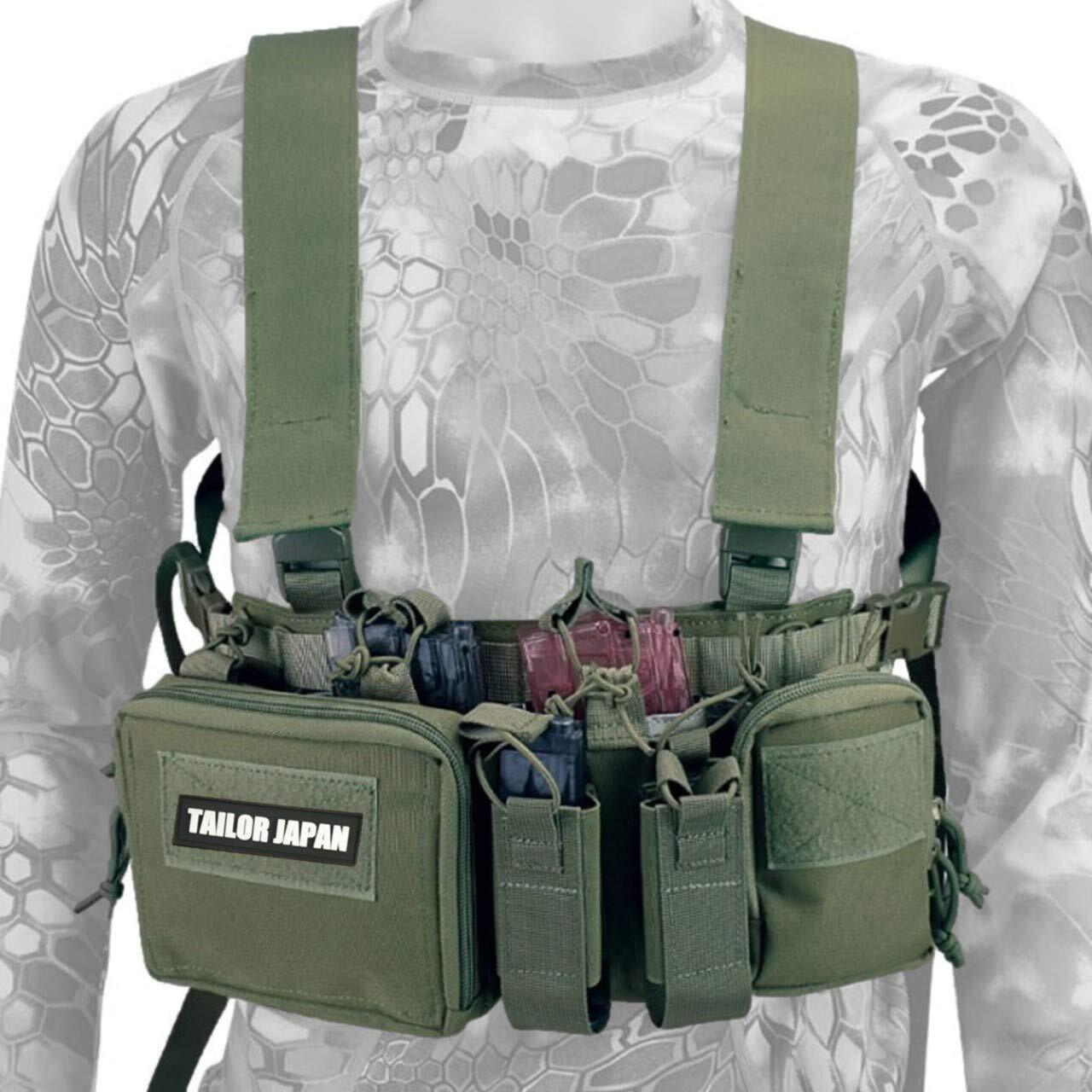 チェストリグ 軽量 ライトウェイト タクティカルベスト サバゲー ベスト ポーチ マガジンポーチ 黒 1000Dナイロン製 OD オリーブ (グリーン)