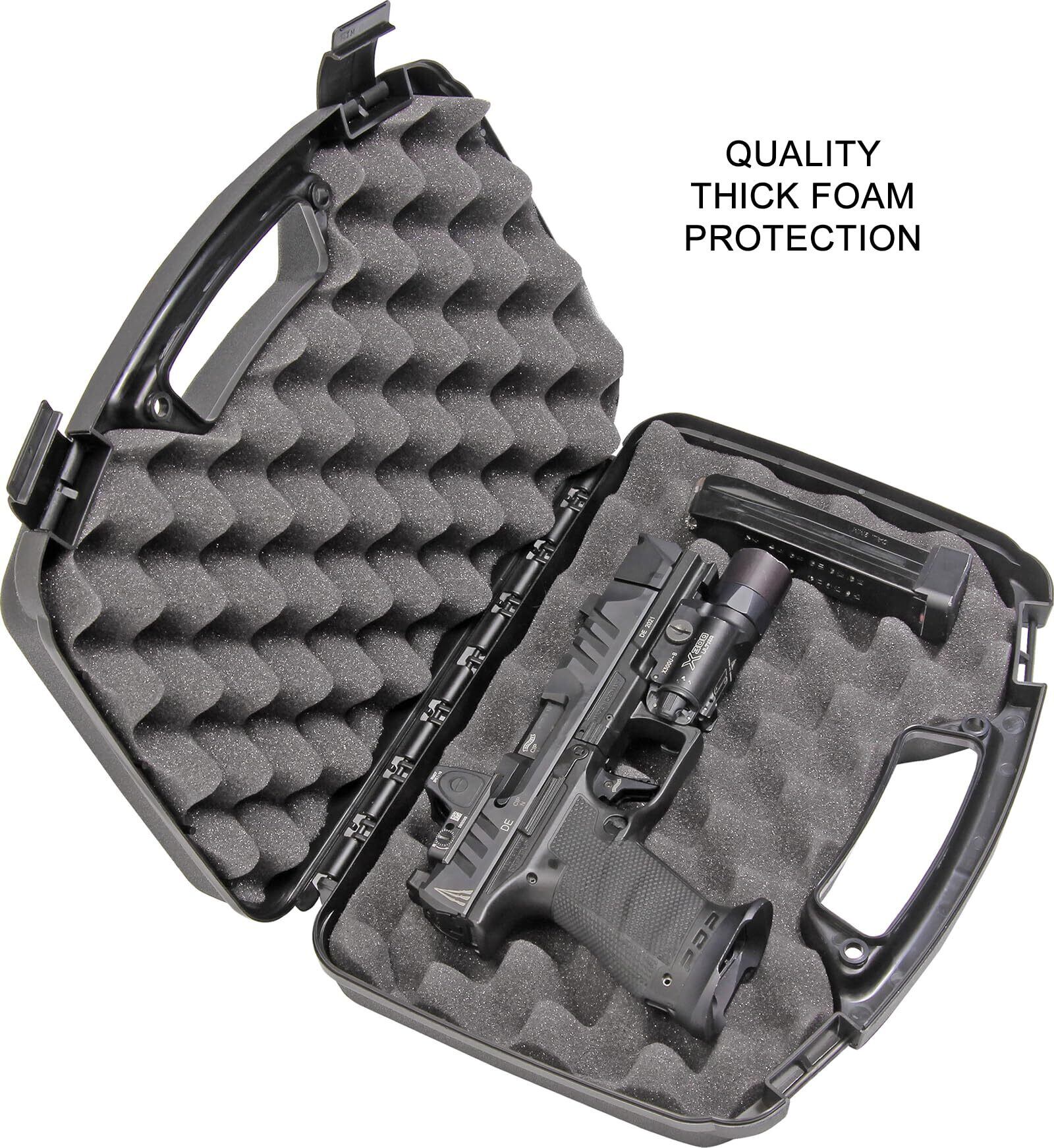 中型のハンドガンを収納できるハンドガンケースです。マルゼン製P99や東京マルイ製M92Fなどの中型オートマッチックや、タナカ製M29/4インチ、東京マルイ製パイソン/4の中型リボルバーであれば1丁収納可能な大きさです。