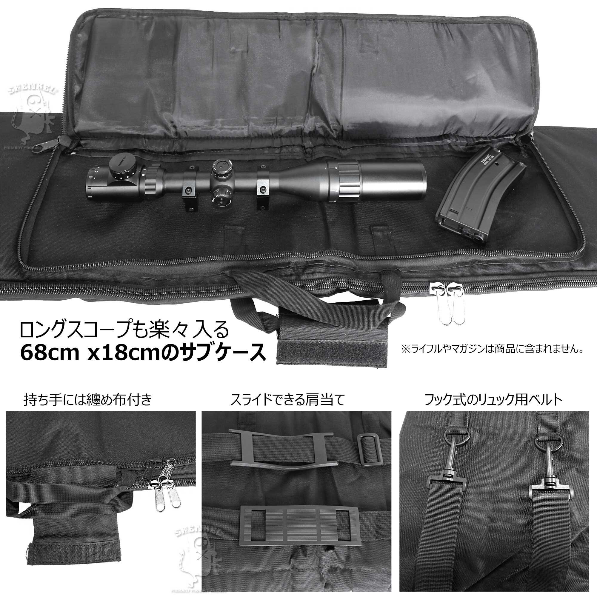 サブケースには小型のマシンガンやハンドガン、長めのスコープなどが入り、メインウエポンとサブウエポンを同時に収納できます。