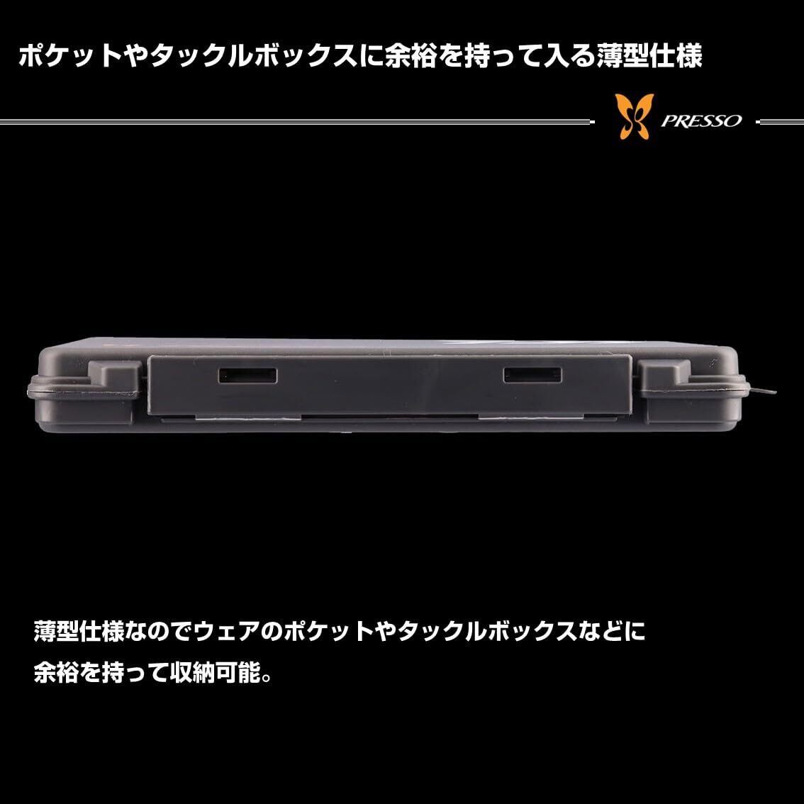 ポケットやタックルボックスに余裕を持って入る薄型仕様:薄型仕様なのでウェアのポケットやタックルボックスなどに余裕を持って収納可能。 フックやルアーどうしの干渉を防ぐパーテーション付き。