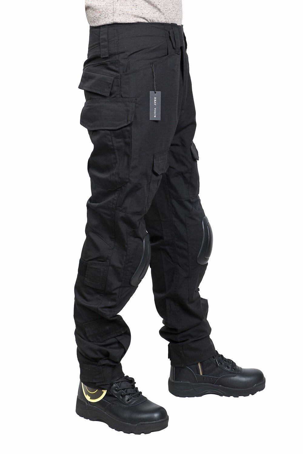【在庫処分】サバゲー BDU 迷彩服 戦闘服 自衛隊 ズボン 日本人サイズ 二ーパッド ニーパッド付き (XL, 黒)