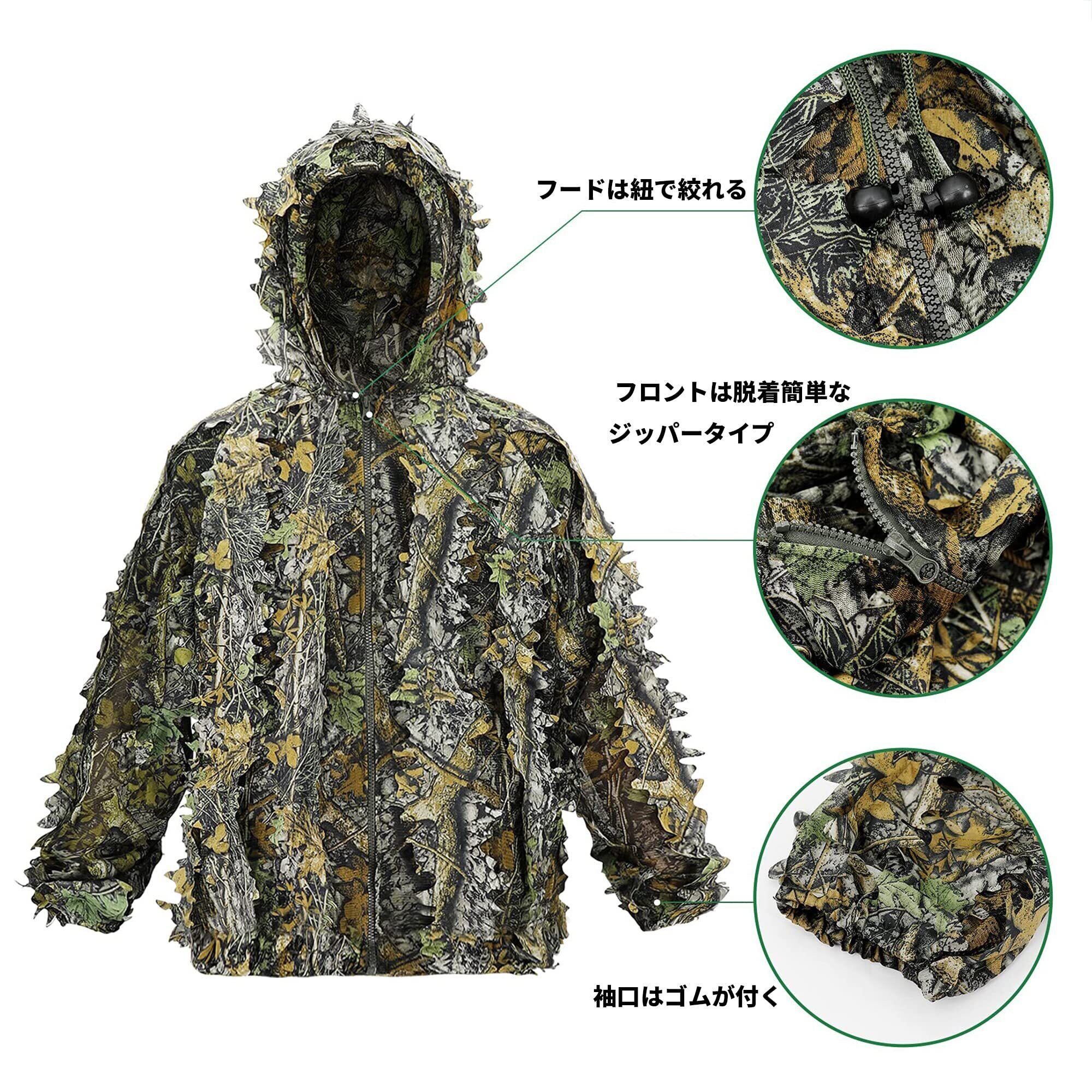 リアルツリー柄ギリ―スーツです。3Dパターンでリアルな草木を再現、フードも付きカモフラージュ効果抜群です!