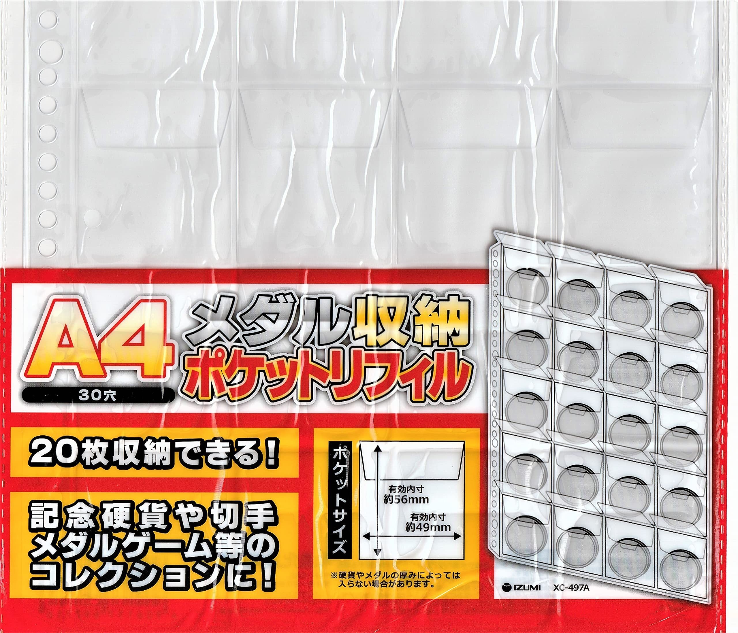 メダル収納 メダルケース A4 ポケットリフィル 20枚収納できる 記念硬貨や切手 メダルゲーム等のコレクションに