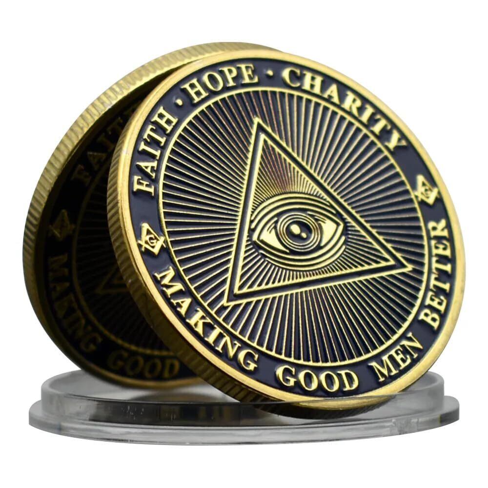 【在庫セール】フリーメイソン プロビデンスの目 グランドロッジ 記念コイン コイン メッキ インノベルティコイン 趣味の雑貨 重量 ゴールドコイン プレゼント 誕生日感あり 金メッキ お礼 新年 贈り物