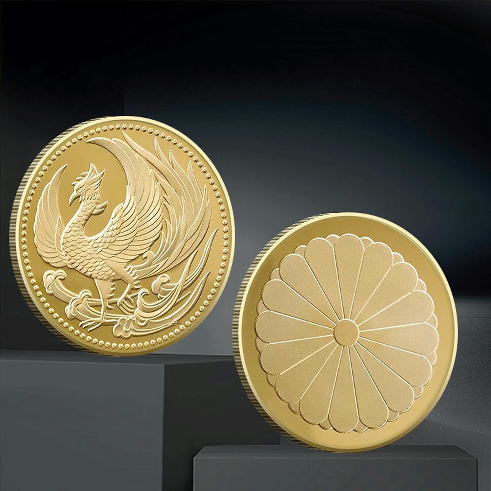ゴールド コイン 金貨 鳳凰 2枚セット 菊御紋 ケース付 菊花紋章 金鍍 金 メダル レプリカ