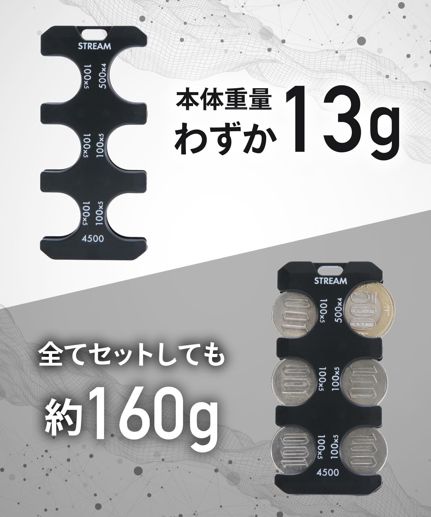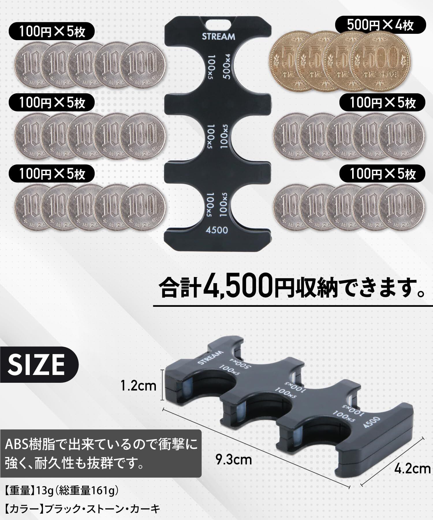 【収納力が大幅アップ】500円×4枚・100円×25枚(合計4,500円)が収納できます。