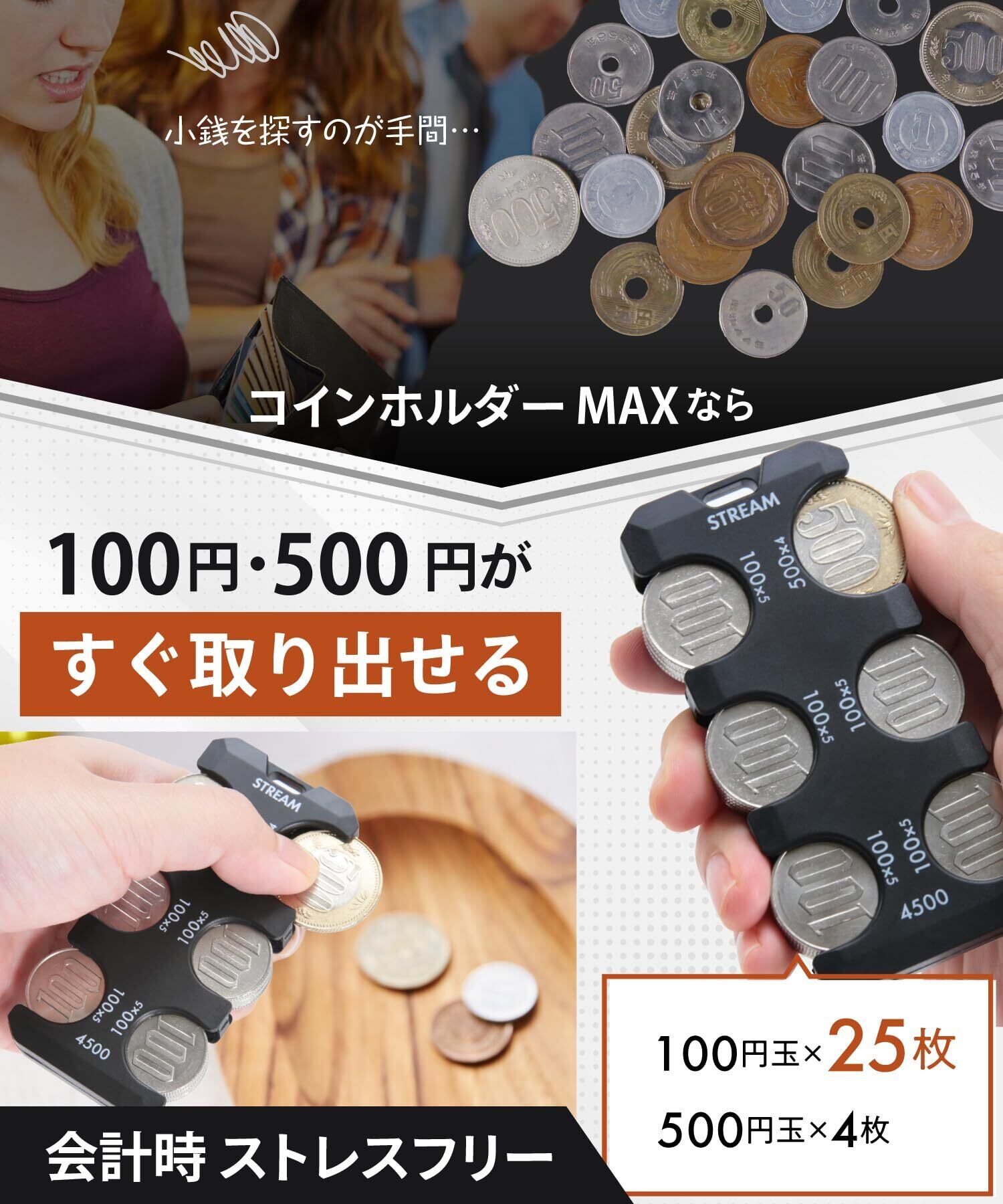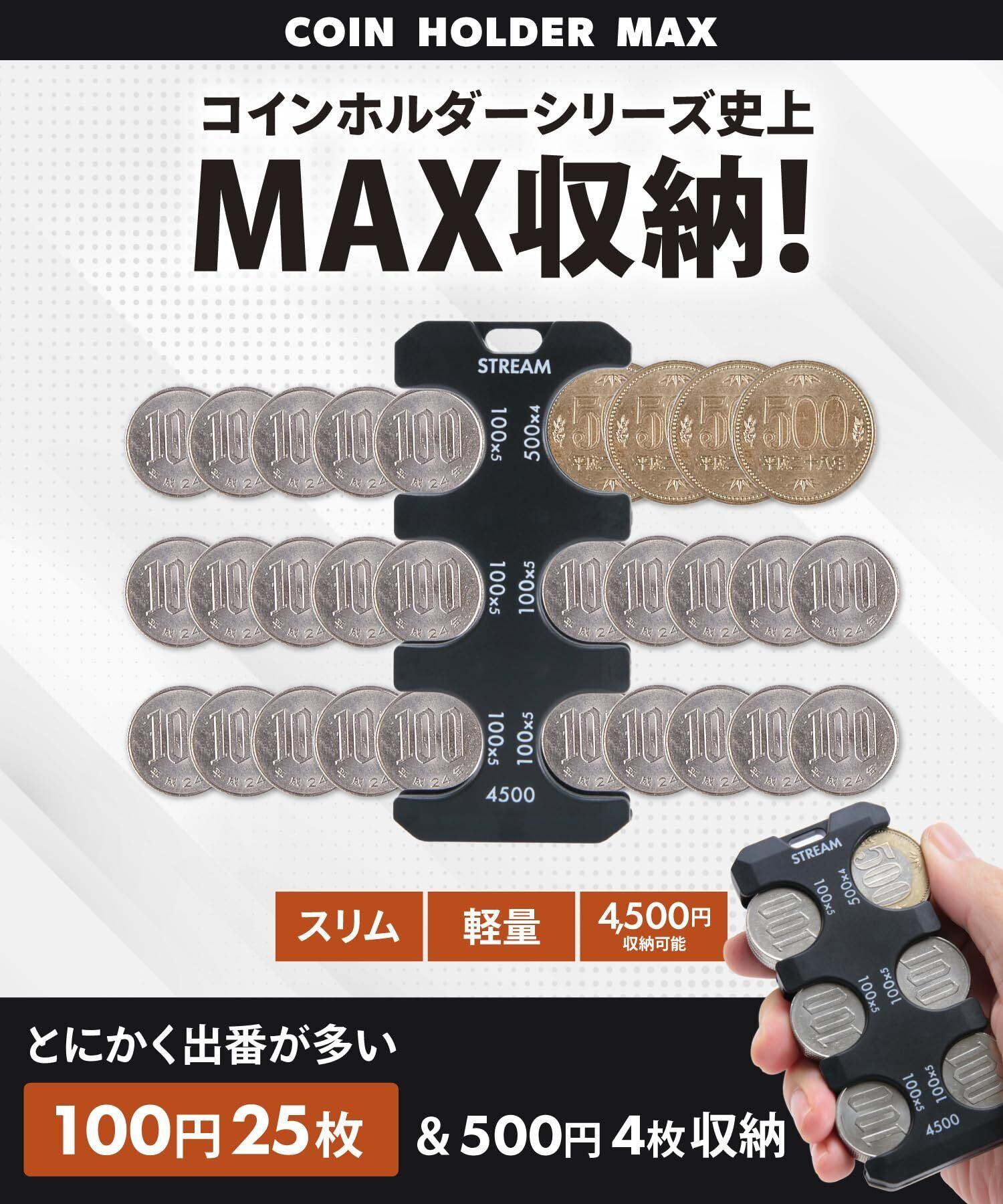 コインホルダー MAX コインケース 小銭入れ 車 薄型 携帯用 コインパーキング (ブラック)