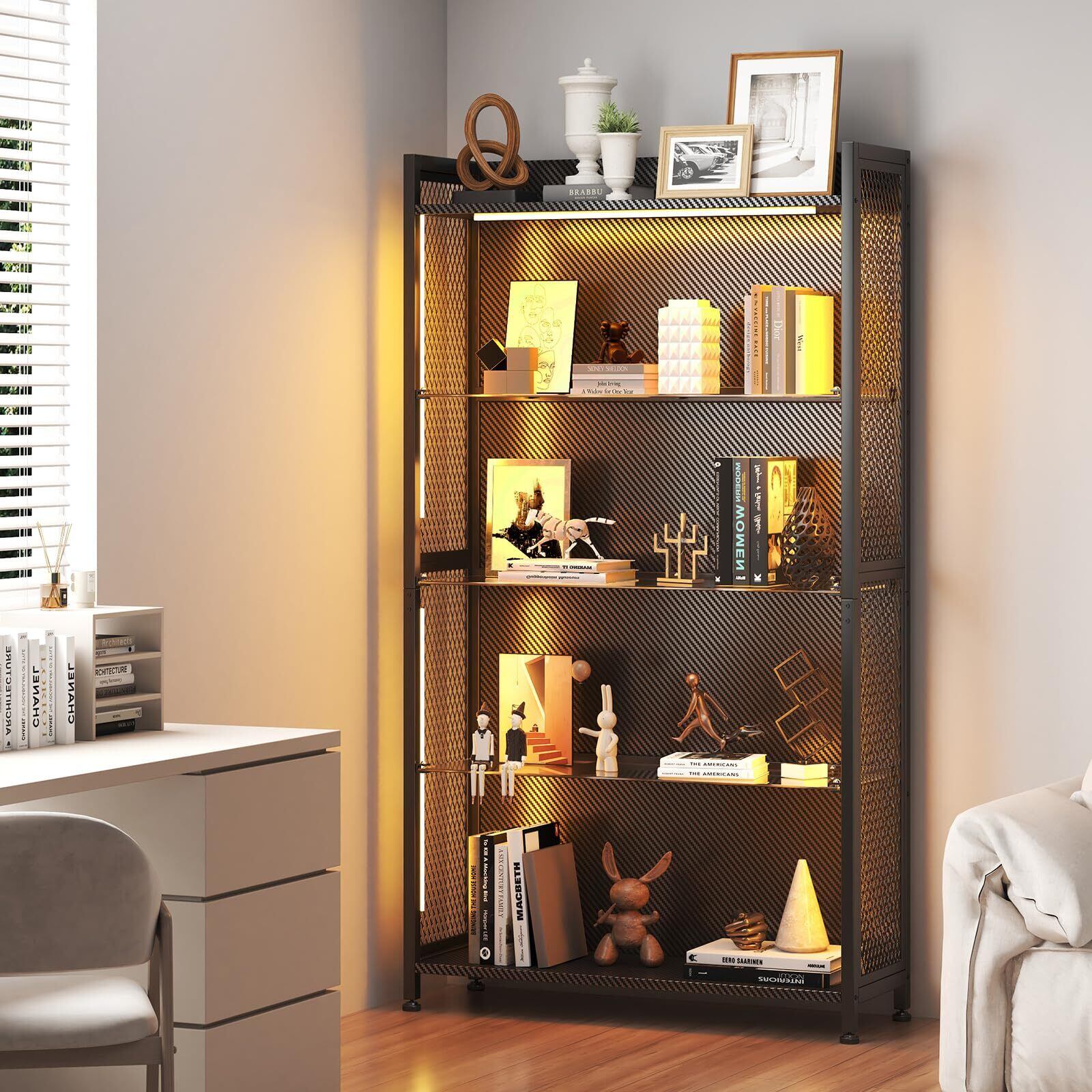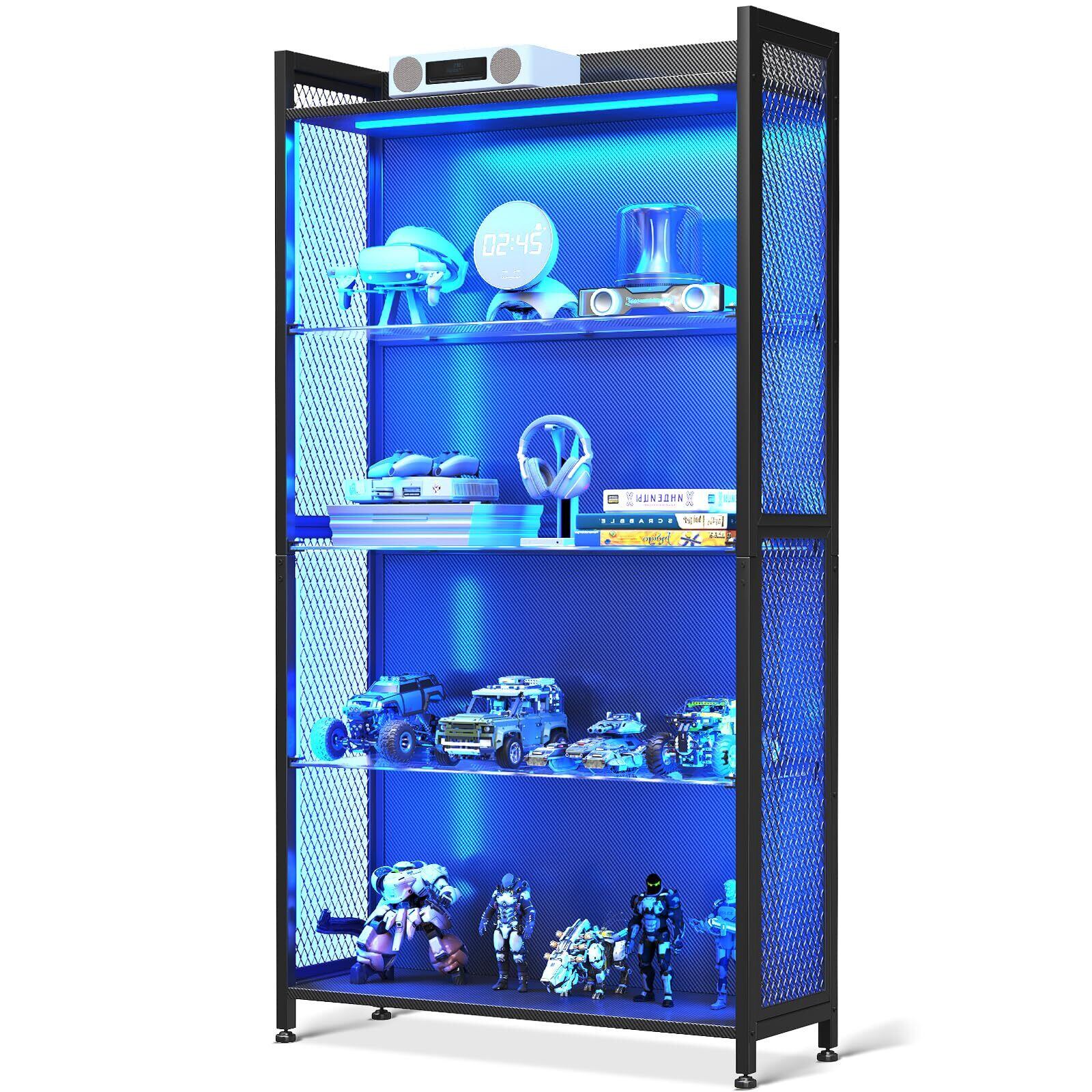 【雰囲気たっぷり】この収納棚は、単なる収納家具ではなく、あなたのこだわりを表現するディスプレイステージです。LEDの幻想的な光が、フィギュアやゲーム機を主役に変え、お部屋やゲーミングルームをまるで専門店のようないきいきとした空間に演出します。