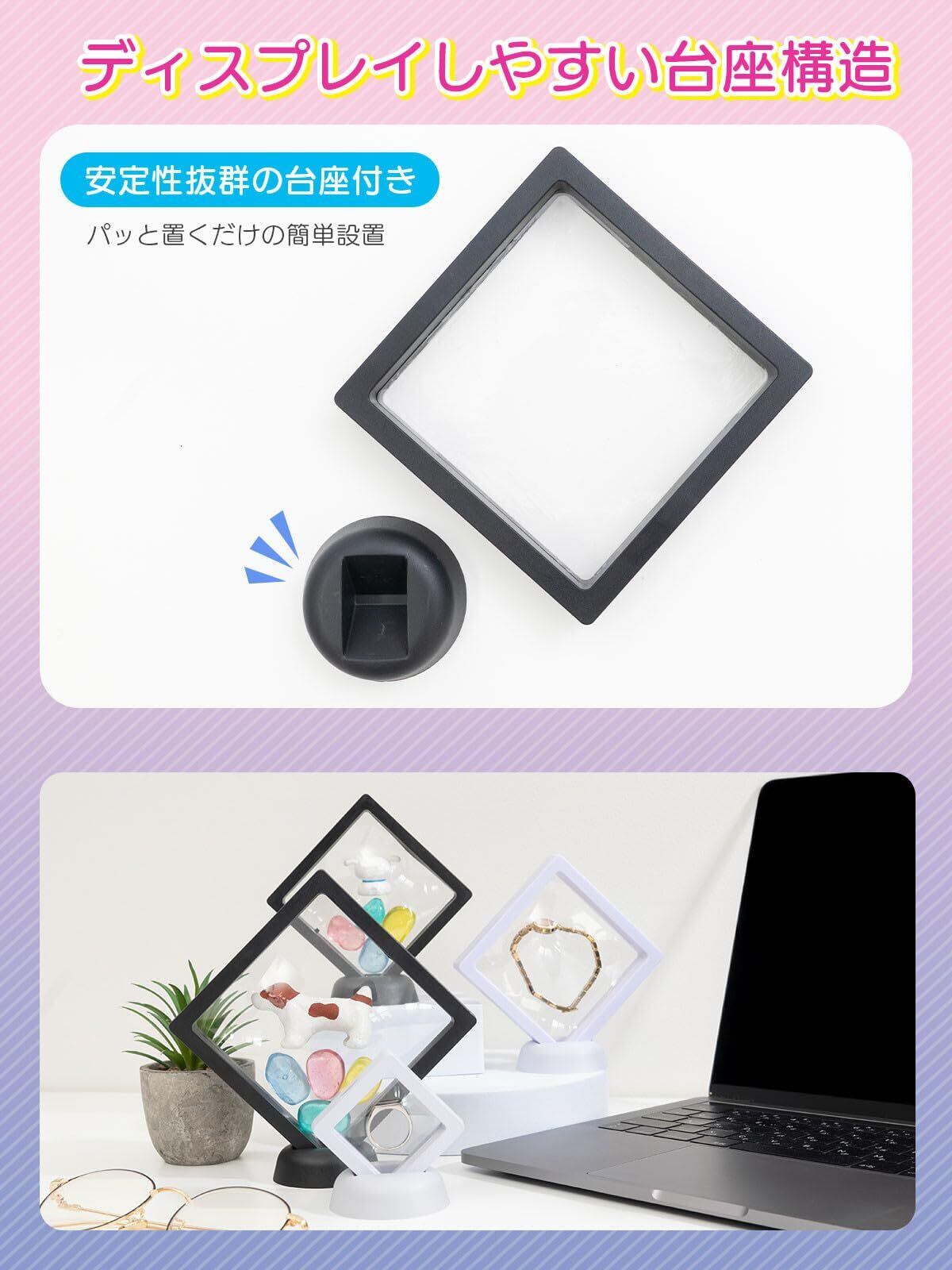 【数量限定】ディスプレイケース (台座付き)立てて飾れるxホコリや傷の防止にx全4サイズ (ブラック, 9×9㎝(6個入り))
